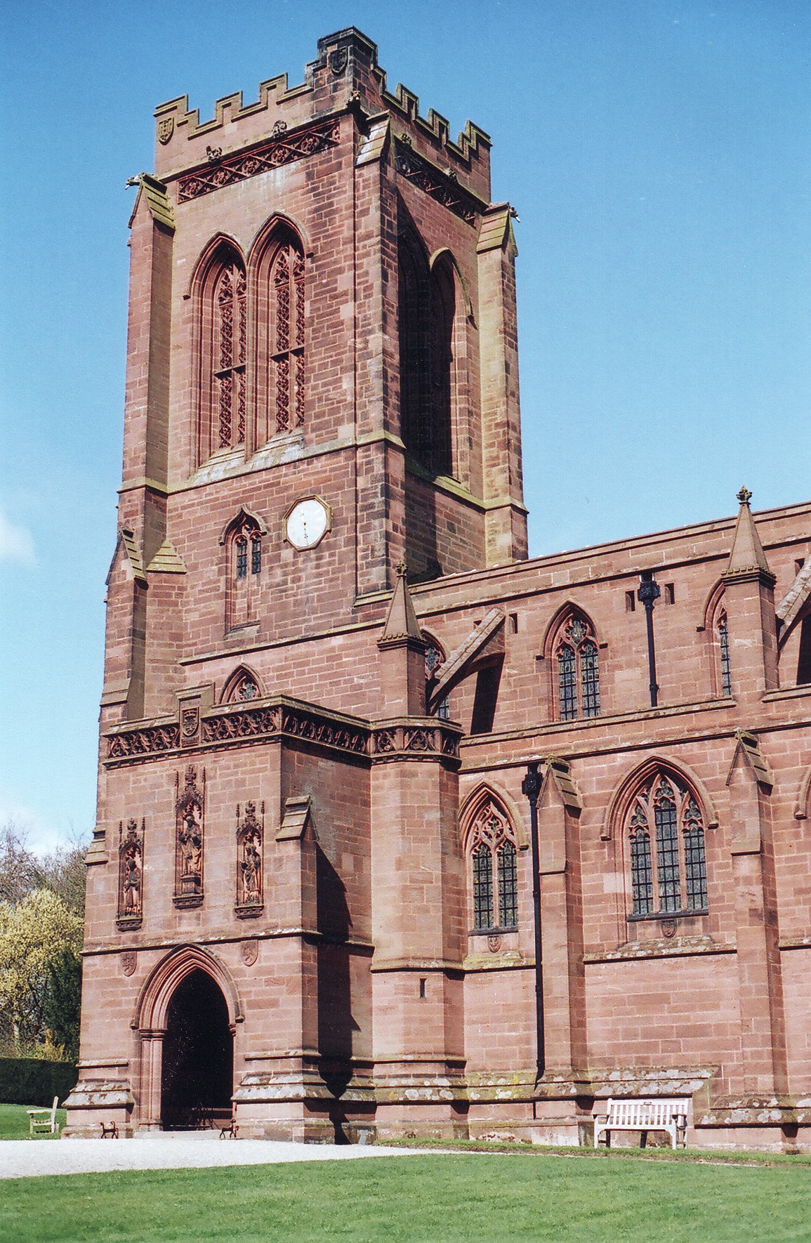 This is a large and rather severe building by George Frederick Bodley, erected between 1897 and 1900 at the expense of the first Duke of Westminster, using what was probably sandstone from the pebble beds of lowest Triassic age from the duke’s nearby quarry at Waverton, some two and a half miles to the east-northeast. Bodley’s style is essentially Second Pointed (Decorated) here, yet some of his elements derive from Perpendicular work, the arcade piers in particular, which led The Builder magazine to write: 'We presume that Mr. Bodley thinks it is allowable to play with and mix the details of past styles in this manner. It is open to question; perhaps, if we consent to the use of imitation mediaeval at all, we have a right to pick and choose, and combine as we please.' (The Builder, vol. 80 (1901), pp. 431-432.)