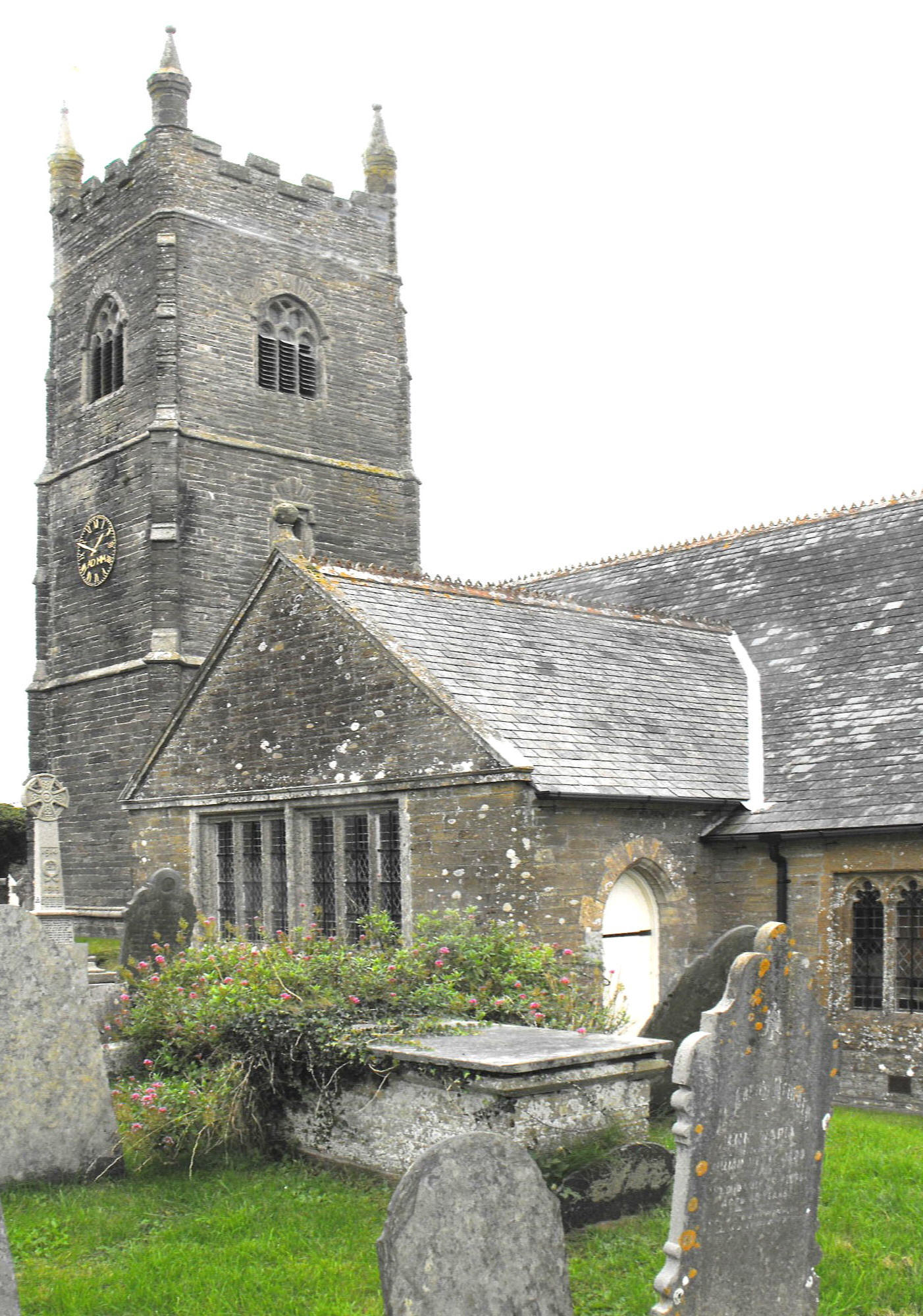 According to legend, St. Nonna was the mother of St. David of Wales, and the church dedicated to her here is a substantial one which, like many in Cornwall, looks rather more impressive from a short distance, before the intractability of the stone is betrayed by the rough masonry and the poor definition of the window tracery in particular. The building is formed of a W. tower, a structurally undivided nave and chancel with the additions of a S. porch, S. transept and S. vestry, and an independently-gabled and structurally undivided N. aisle and chapel beginning some twelve feet (4 m.) east of the nave/tower junction but ending in line with the chancel E. wall. Of these various parts, the tower, nave and chancel are manifestly Perpendicular, but whether the same is true of the aisle and chapel, as Pevsner implies (The Buildings of England: Cornwall, New Haven & London, Yale University Press, 2002, p. 132), is altogether less clear, for while the four N. windows have supermullioned tracery, they are set within in the widest of oval splays, in keeping in their form with the aisle arcade of c. 1680. It thus seems rather more likely that both these and the chapel E. window are the former N. windows of the nave and chancel, re-set. The arcade (illustrated below, looking northwest from the sanctuary) is constructed in four wide bays, of elliptical arches with shallow keystones, and circular piers with wide, square, shallow capitals which Pevsner, with considerable licence, described as 'Tuscan Doric'. Returning to the tower, however, this is very similar to that at neighbouring Lansallos, rising in three stages to battlements and oddly-shaped, slightly swollen pinnacles, supported by diagonal buttresses. The three-light bell-openings have uncusped, crudely cut straightened reticulation units in the heads and the W. wall features a round-arched doorway with amorphous Perpendicular mouldings and a W. window above in the style of the bell-openings. The church guide (anonymous, Parish Church Pelynt, undated, p. 3) declares the deep S. transept to have been completed in its present form in 1833, but the lean-to vestry and very broad porch seem likely to have been added later.