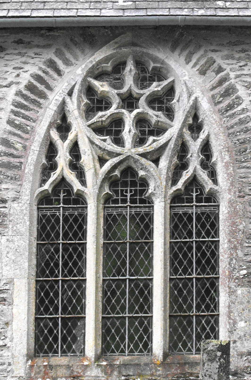 This is a more interesting building than its profile suggests, built of uncoursed grey rubble with slate roofs and formed of a slender, largely featureless W. tower of Early English date (i.e. the thirteenth century), a Decorated (early to mid fourteenth century) nave, chancel, S. transept and S. porch, and an independently-gabled Perpendicular (late fourteenth to fifteenth century) N. aisle and N. porch, which runs the whole length of the nave and chancel and was probably erected after a former N. transept was demolished.