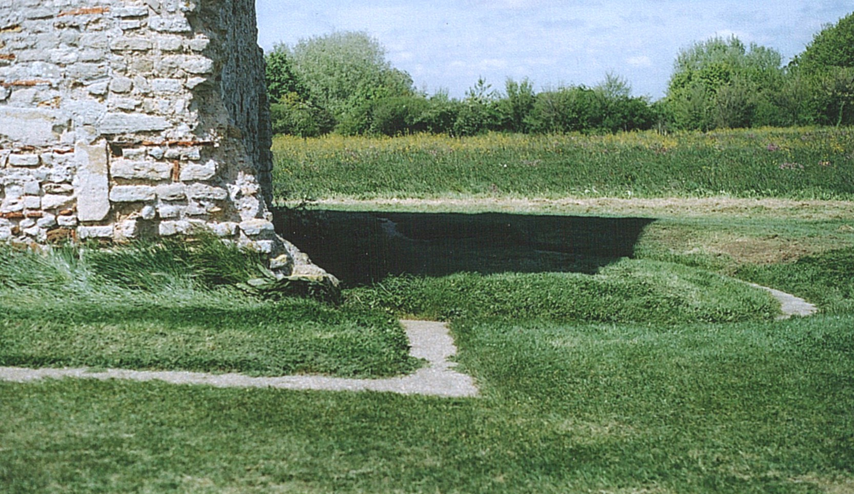 The building to be seen here today was almost certainly constructed c. 660 under the direction of Cedd himself and probably replaced a temporary wooden structure. It consists of a nave 49½ feet by 21½ feet (15.1 m. by 6.6 m.), which survives to its full height, and traces of foundations that show there was once: (i) a chancel that extended about six feet (2 m.) eastwards before ending in a semicircular apse; (ii) two porticuses - one each to the north and south of the junction of nave and chancel; and (iii), a W. narthex - which, in later years, had for a time a little tower built above it, used at one stage as a beacon for shipping! (See the photograph at the foot of the page.) The nave displays the re-use of Roman materials (not only brick and tile, but also Kentish ragstone, septaria, and even some oolitic limestone), of which plenty would have been immediately to hand as this is also the site of the now-vanished Roman fort of Othona. The W. window, which is the only one whose round-headed arch remains, is turned in Roman brick, as are the surviving parts of the arcade that once separated the nave from the chancel and are now to be seen in the blocked E. wall. Remaining fragments of St. Pancras’s church, Canterbury, St. Mary’s, Lyminge, and St. Mary’s, Reculver, all in Kent and dating from the mid-seventh century, show there were usually three arches in this position (probably because the construction of a single-span 'chancel arch' was too structurally demanding at this time), but measurements suggest there can only ever have been two here at Bradwell. The building plan also shows the N. porticus was entered from the chancel and the S. porticus from the nave. This would conform with their use in the Roman church at this time as what were then known as the diaconicon and the prothesis, respectively a room for the clergy and the keeping of sacred vessels (i.e. a kind of vestry-cum-sacristy), and a room for the reception of offerings from the worshippers (and not the other way round as stated in the 1966 guide to the building). (See Sir Arthur Clapham, English Romanesque Architecture Before the Conquest, Oxford, The Clarendon Press, 1930, pp. 26-27). Very large doorways, now blocked, were cut in the N. and S. walls in the seventeenth century when, for a time, the building was used as a barn. However, remnants of its original buttresses can still be seen at the western corners as well as at various points along the walls. The present roof, of course, is modern: the original would probably have been shingled.