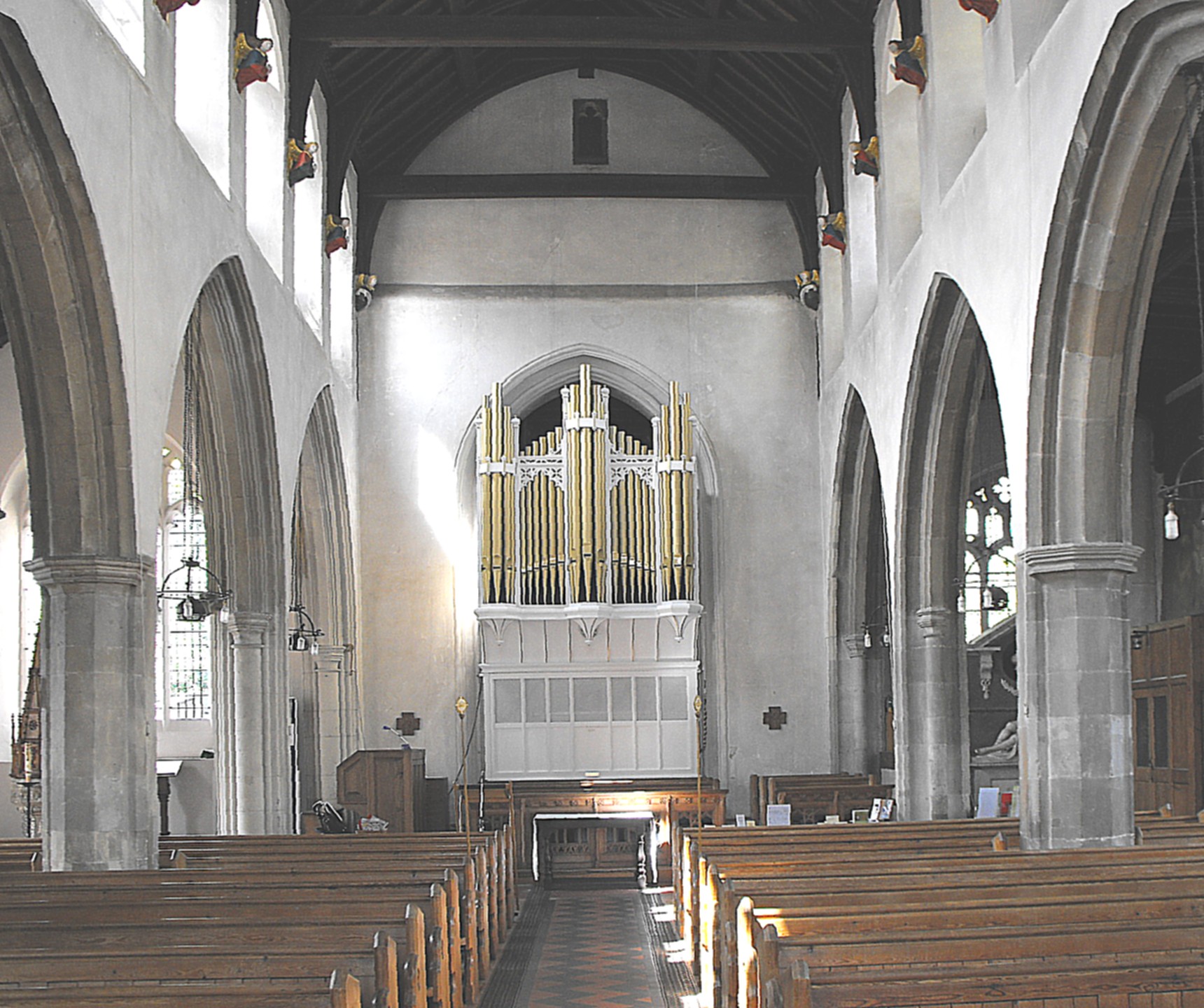 [Related buildings the reader may wish to examine on this web-site include Burwell and Isleham in Cambridgeshire, Dedham, Saffron Walden and Thaxted in Essex, and Cavendish, Denston, Hessett, Lavenham, Long Melford and Stratford St. Mary in Suffolk.] |