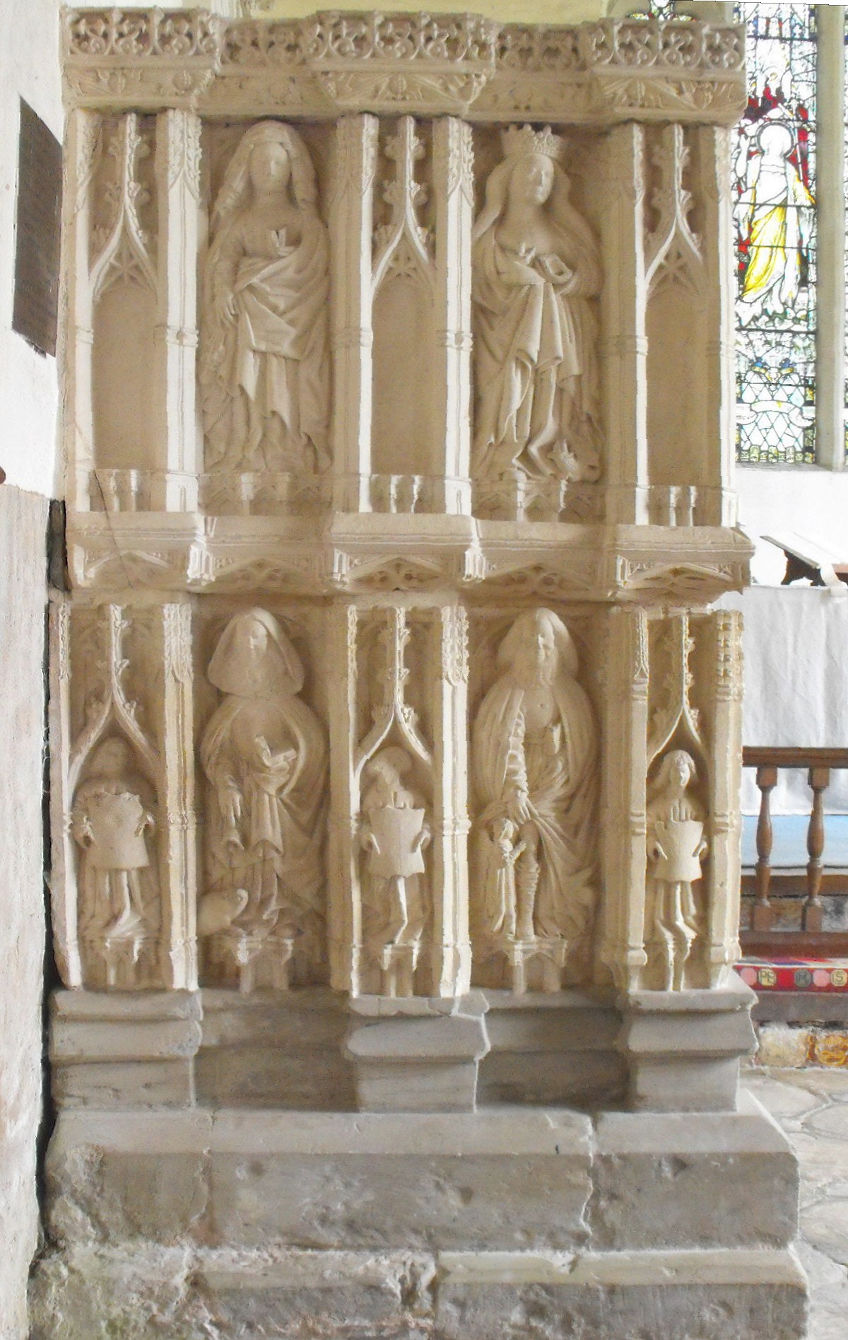 shown, right) and the effigies on the tomb chest are notable for Sir