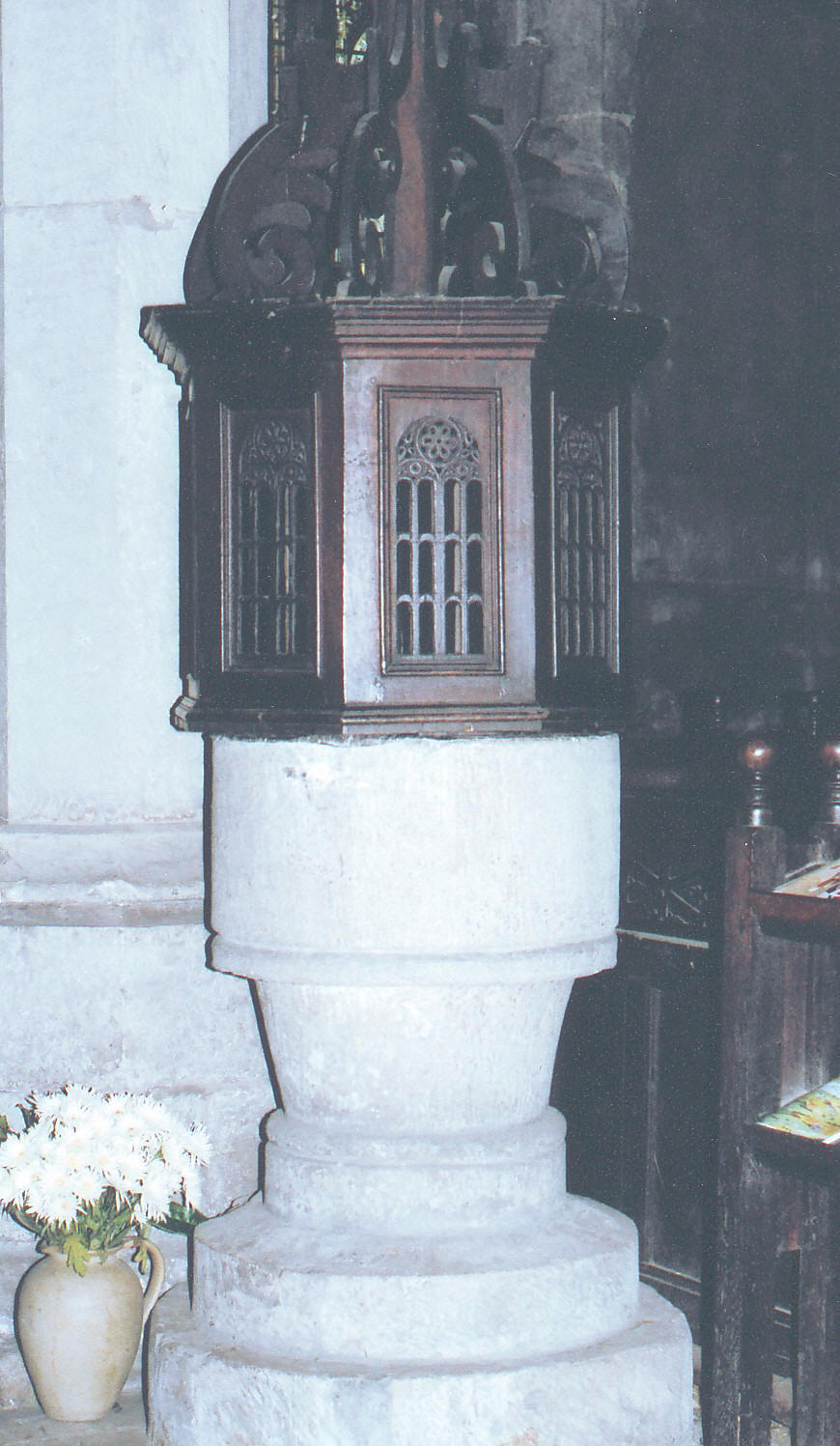 openwork tracery and is octagonal in shape, though it sits on a plain