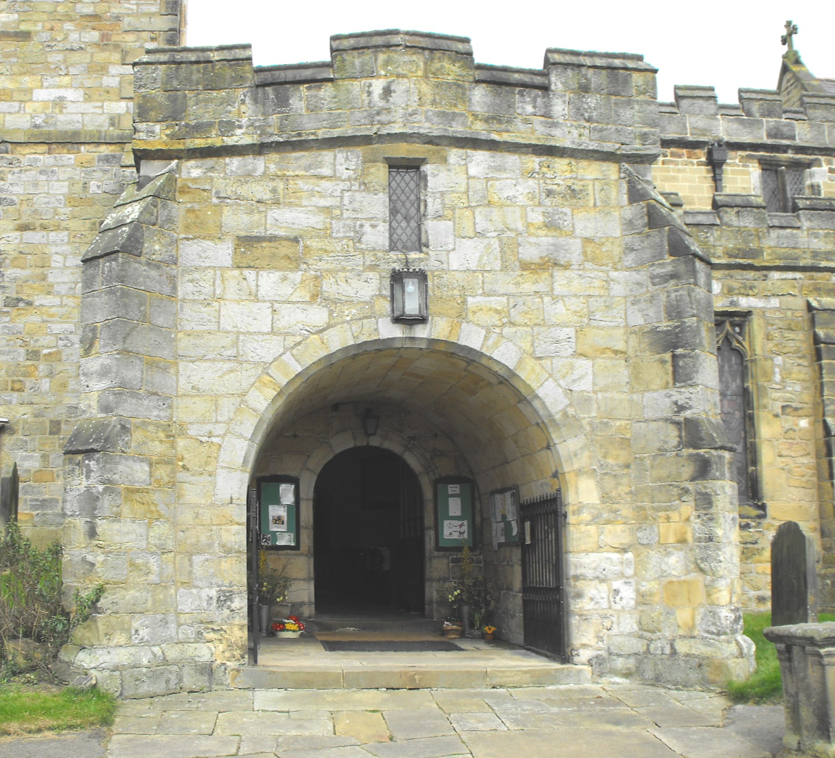 This leaves the porch to be discussed (shown below), which from an architectural perspective, is the most rewarding part of the building. Two storeys high and massively constructed, it is distinguished by its completely covered tunnel vault which rises directly (i.e. without intervening mouldings) from the walls. Almost equally surprising is the stair to the upper storey, ascending straight up from the nave without turning, just inside the inner doorway to the left (west). Finally, three pieces of carpentry require mention from among the church's furnishings, namely the rood screen and parclose screens between the aisles and chapels, which were designed by Temple Moore in 1919. Temple Lushington Moore (1856-1920) was one of the finest late Victorian church architects and much of his work was done in North Yorkshire.