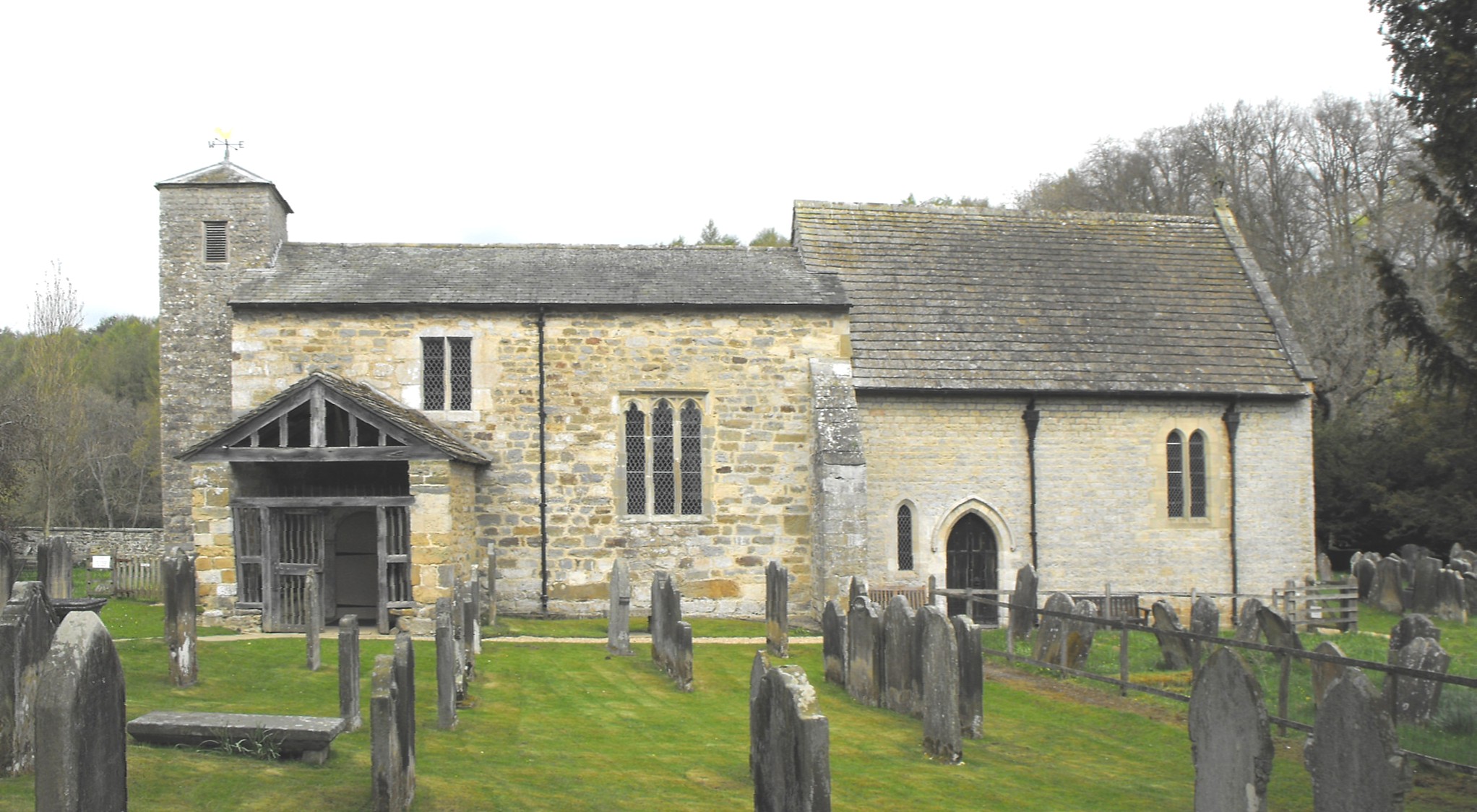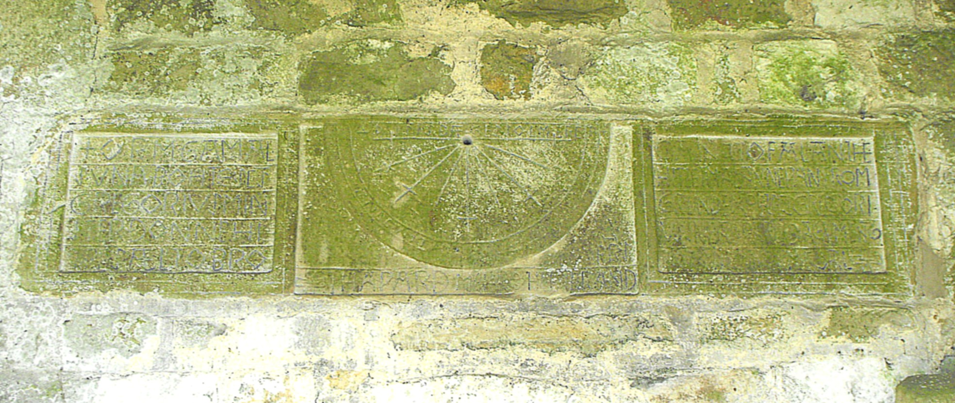 This important little church now stands in an entirely isolated position beside the Hodge Beck. It is significant chiefly for its late Saxon nave, datable from the Old English inscription above the S. doorway (and now inside the nineteenth century S. porch). This is arranged in three panels (shown below), the central one of which is occupied by a sundial, while the outer two read, 'Orm the son of Gamel acquired St. Gregory’s church when it was completely ruined [left hand panel] and collapsed, and he had it built anew from the ground to Christ and St. Gregory, in the days of King Edward and in the days of Earl Tostig [right hand panel]'. Tostig, brother of Harold Godwinson who was briefly Harold I, was Earl of Northumbria between 1055 and 1065, when Edward the Confessor was king.