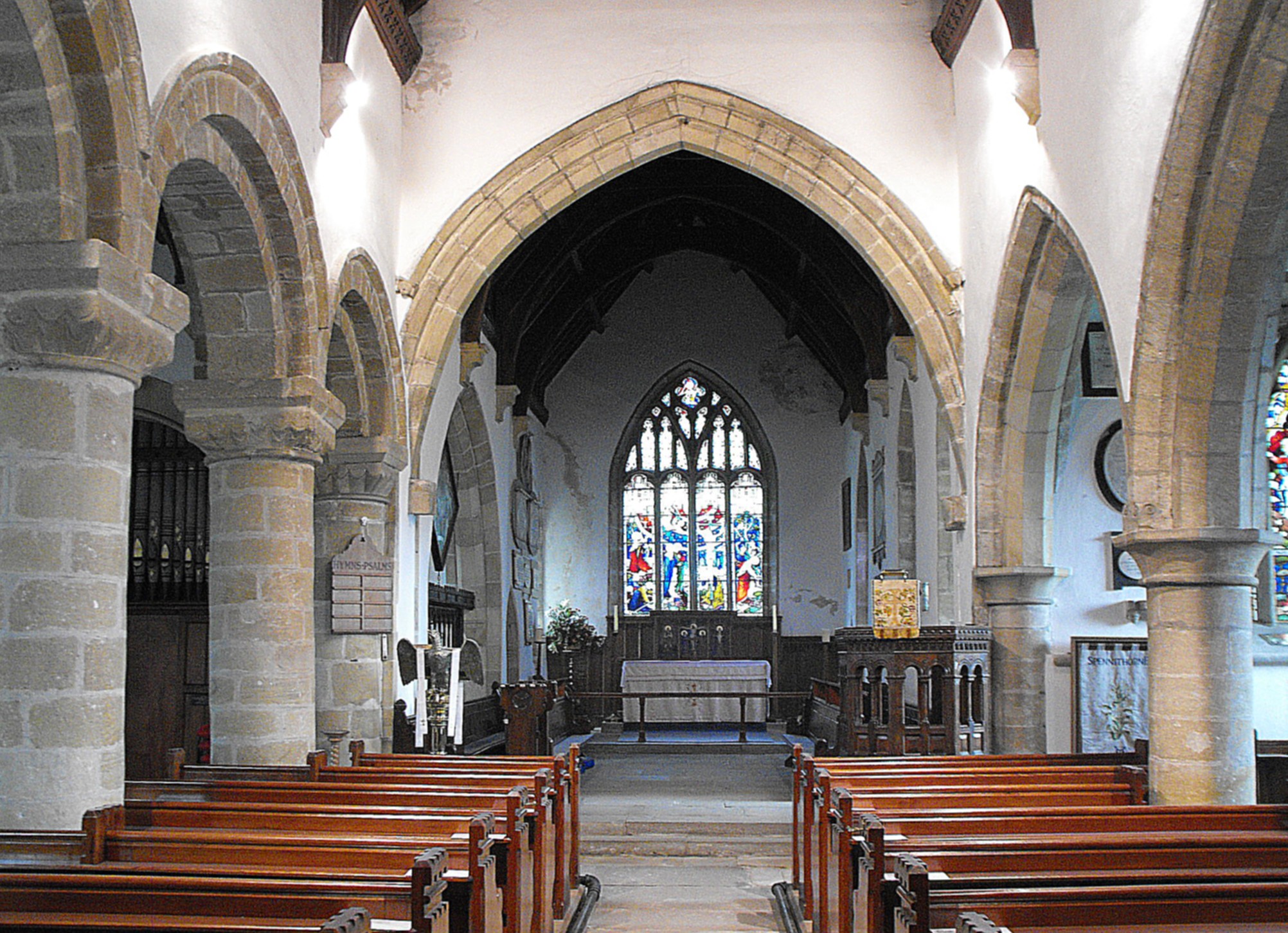 Church furnishings include a free-standing stone bench on the S. side of the chancel, acting as a sedilia. There is an arrangement of nineteenth century monuments on the N. wall of the sanctuary, dedicated to the van Straubenzee family, and there are various other monuments elsewhere.
