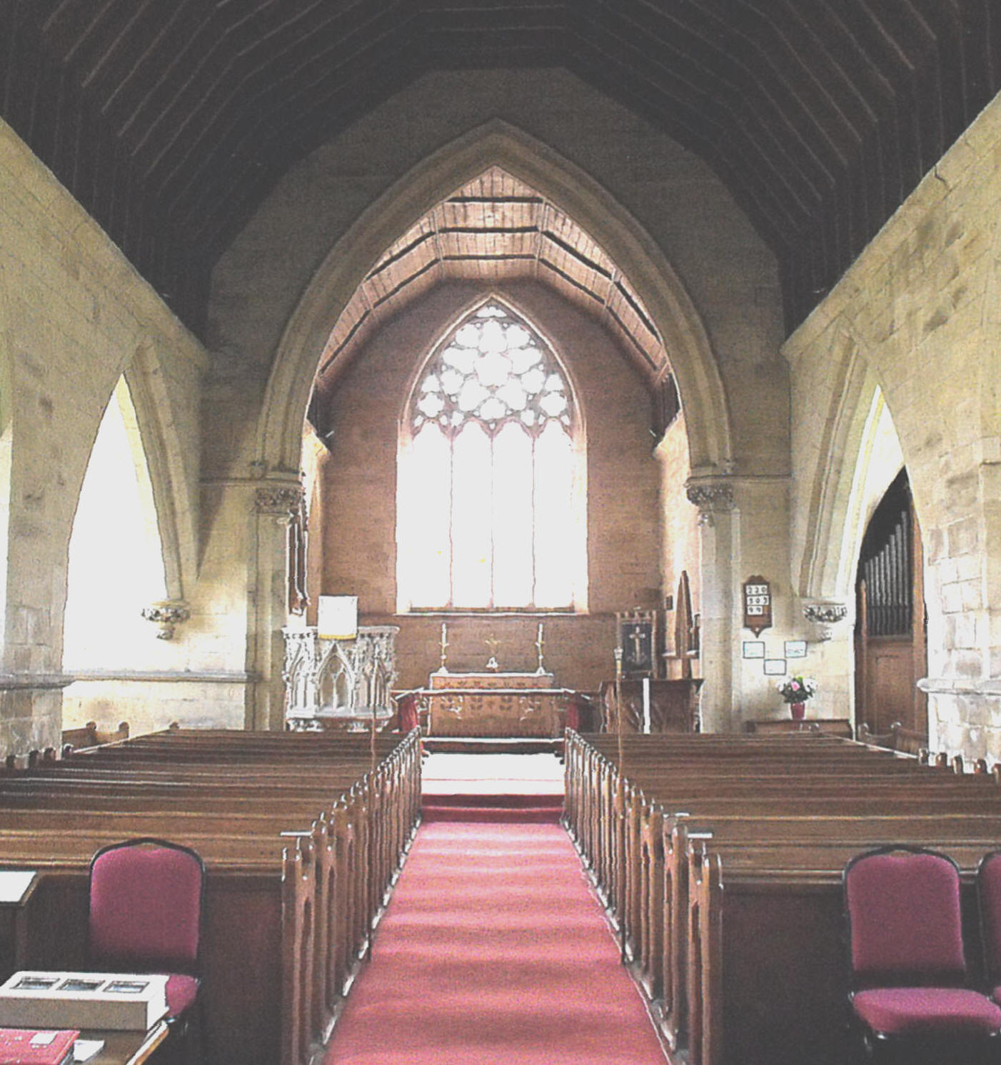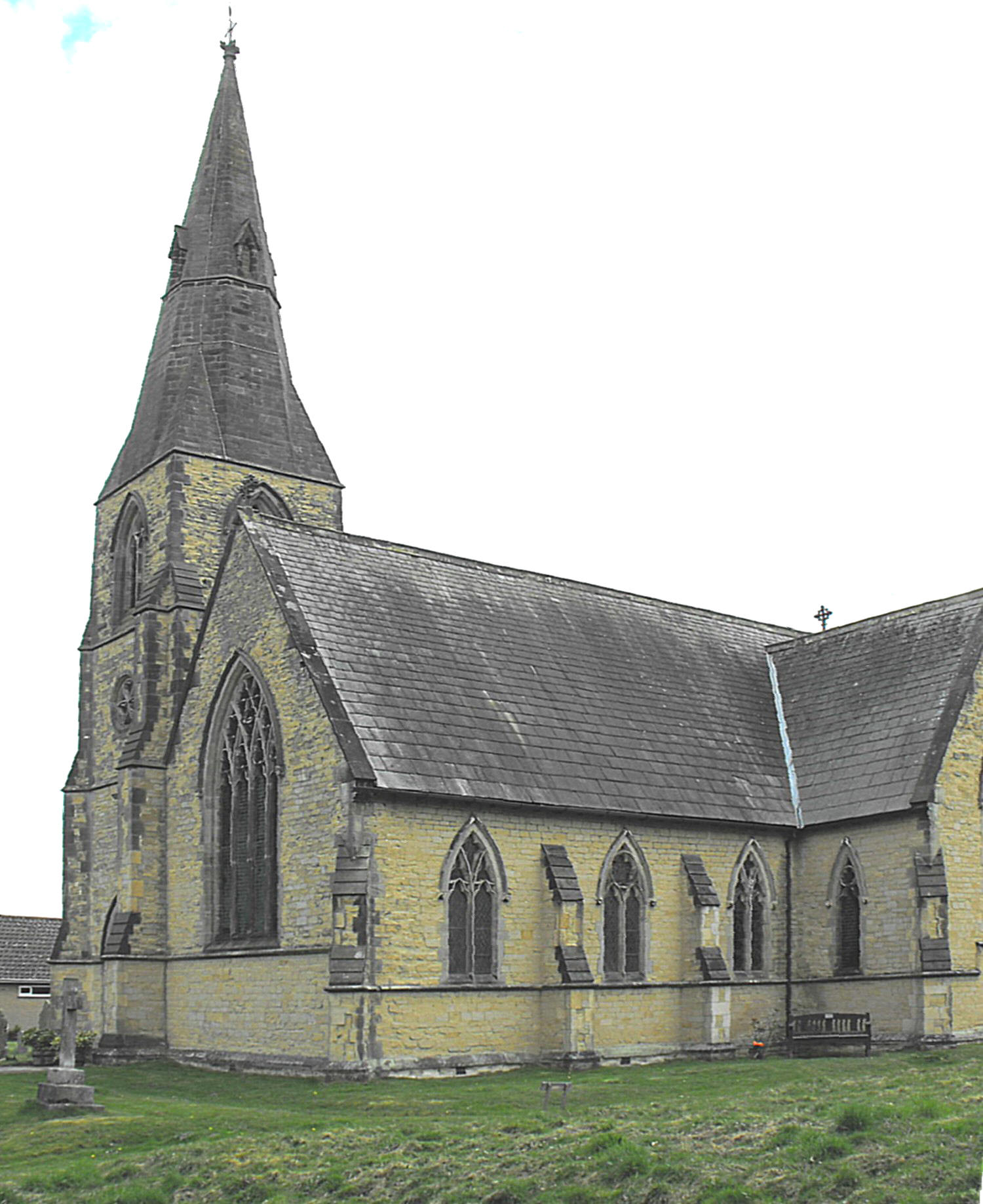 This is a relatively large church for a very small village, and one of Mallinson and Healey's best. The partners were chosen for the commission in August 1858, the foundation stone was laid by the Earl of Carlisle on 15th March the following year (notes in the church), and work had advanced sufficiently for the building to be opened for worship on 20th May 1860 even though the spire was not finally completed until 1865. The church was then a chapel-of-ease to St. Martin's, Bulmer, and so it remained until 1986.
