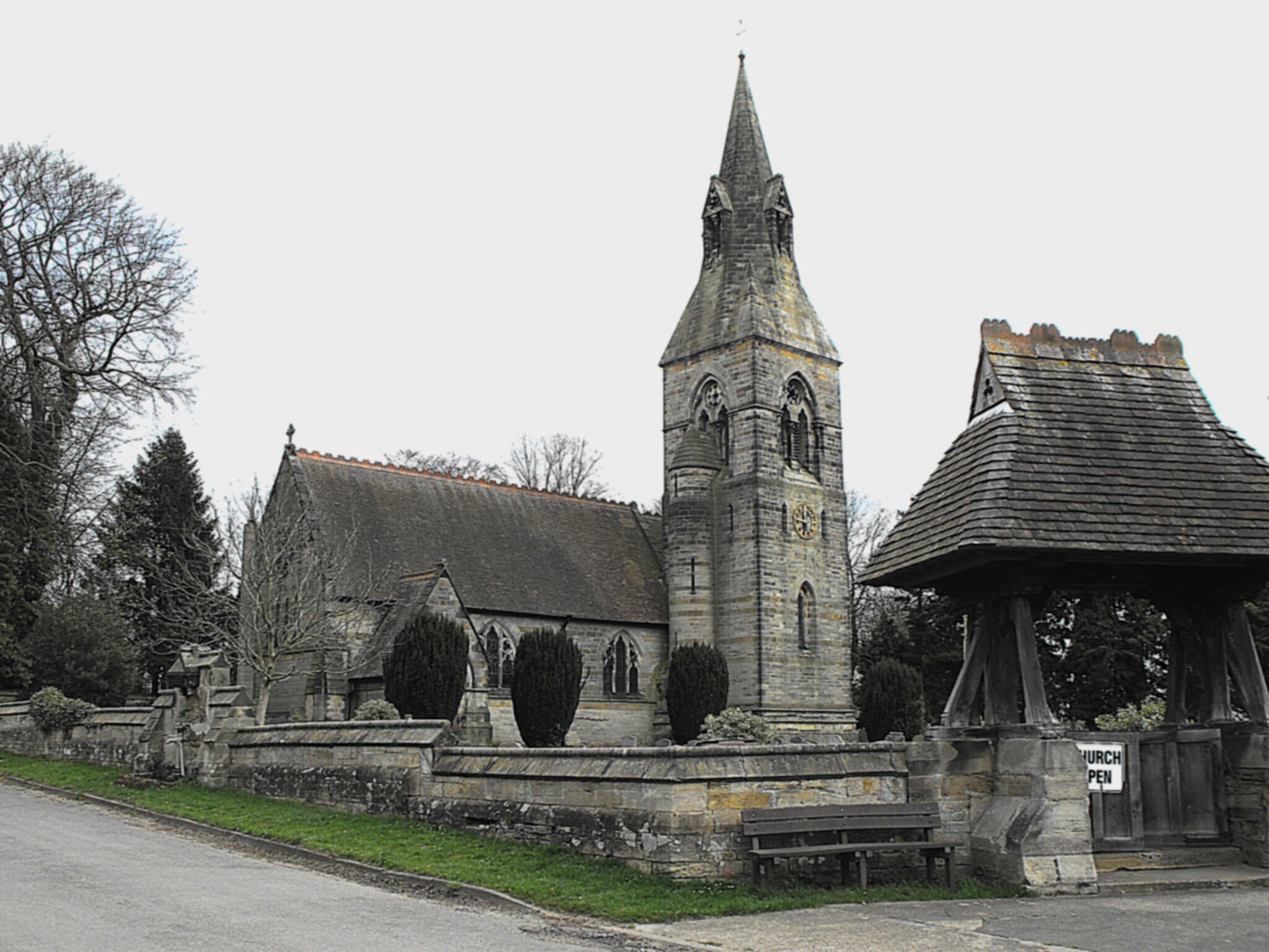 St. John's, Whitwell-on-the-Hill, is an admirable church, completed to Street's designs in 1860, who does his reputation no harm here. It was built at the expense of Lady Louisa Lechmere, shortly after her wedding and in memory of her late father, and consists of just a nave and chancel built as a single unit, and a southeast tower with a broach spire and semicircular stair turret against the W. wall, reaching up to the bell-stage. The building is long, however, and the tower, tall (113 feet). It presents a proud spectacle, standing on a spur above the Kirkham Gorge, beside the present-day A64.