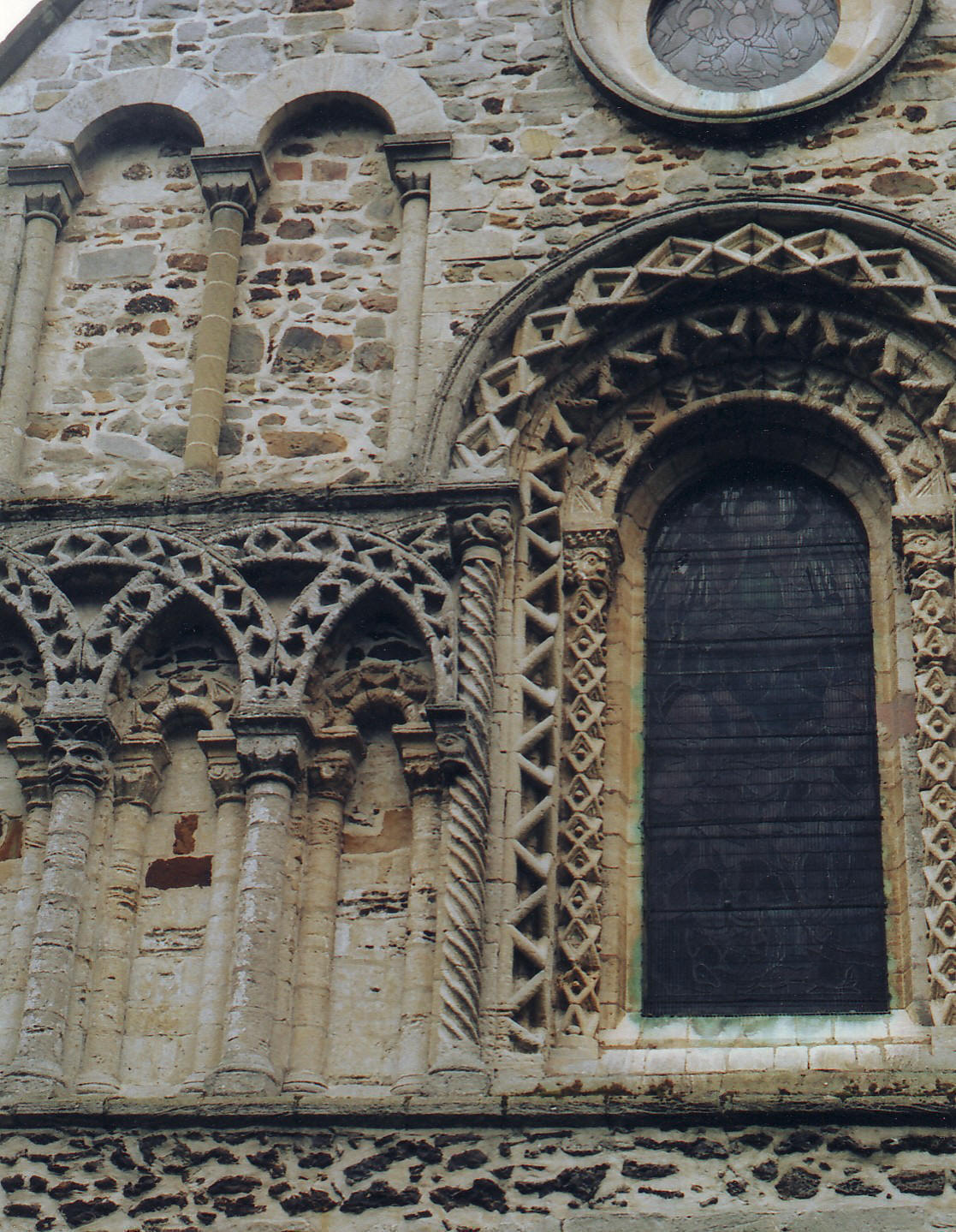 nevertheless include a couple of carved heads. However, the upper tier of blank arcading and the circular window in the