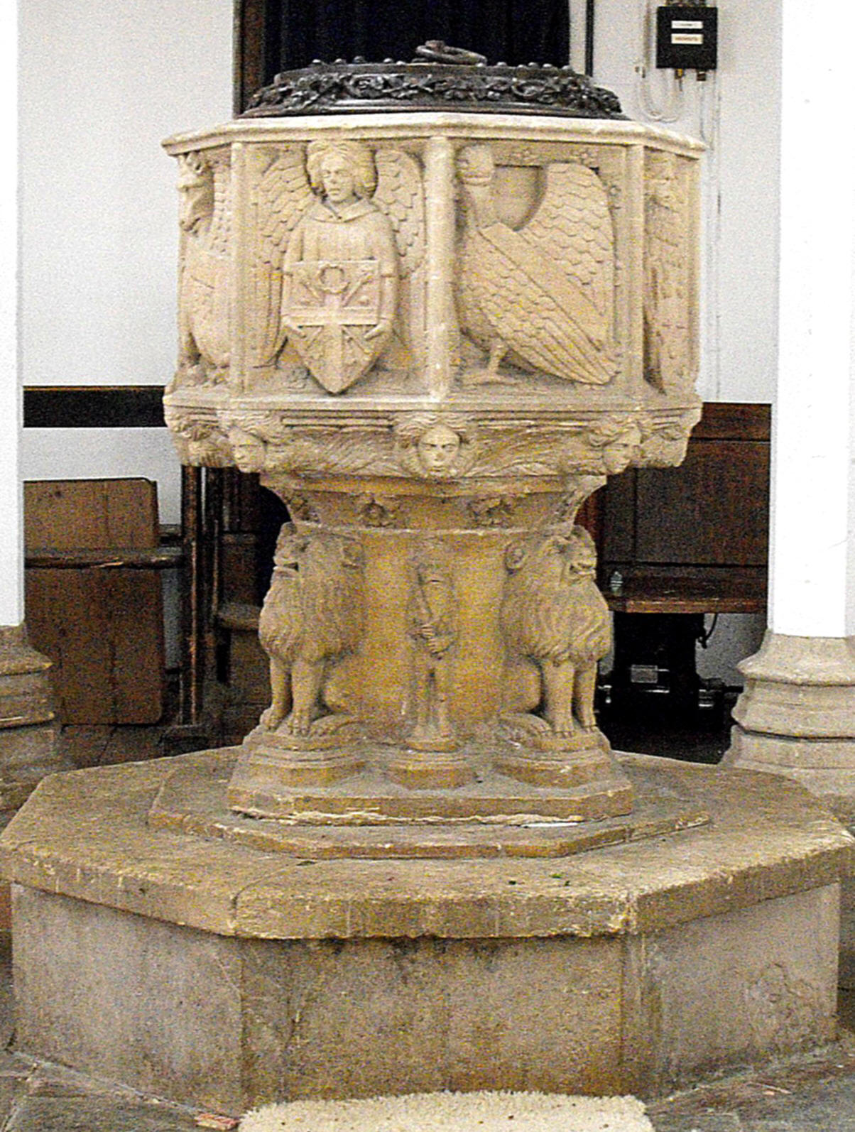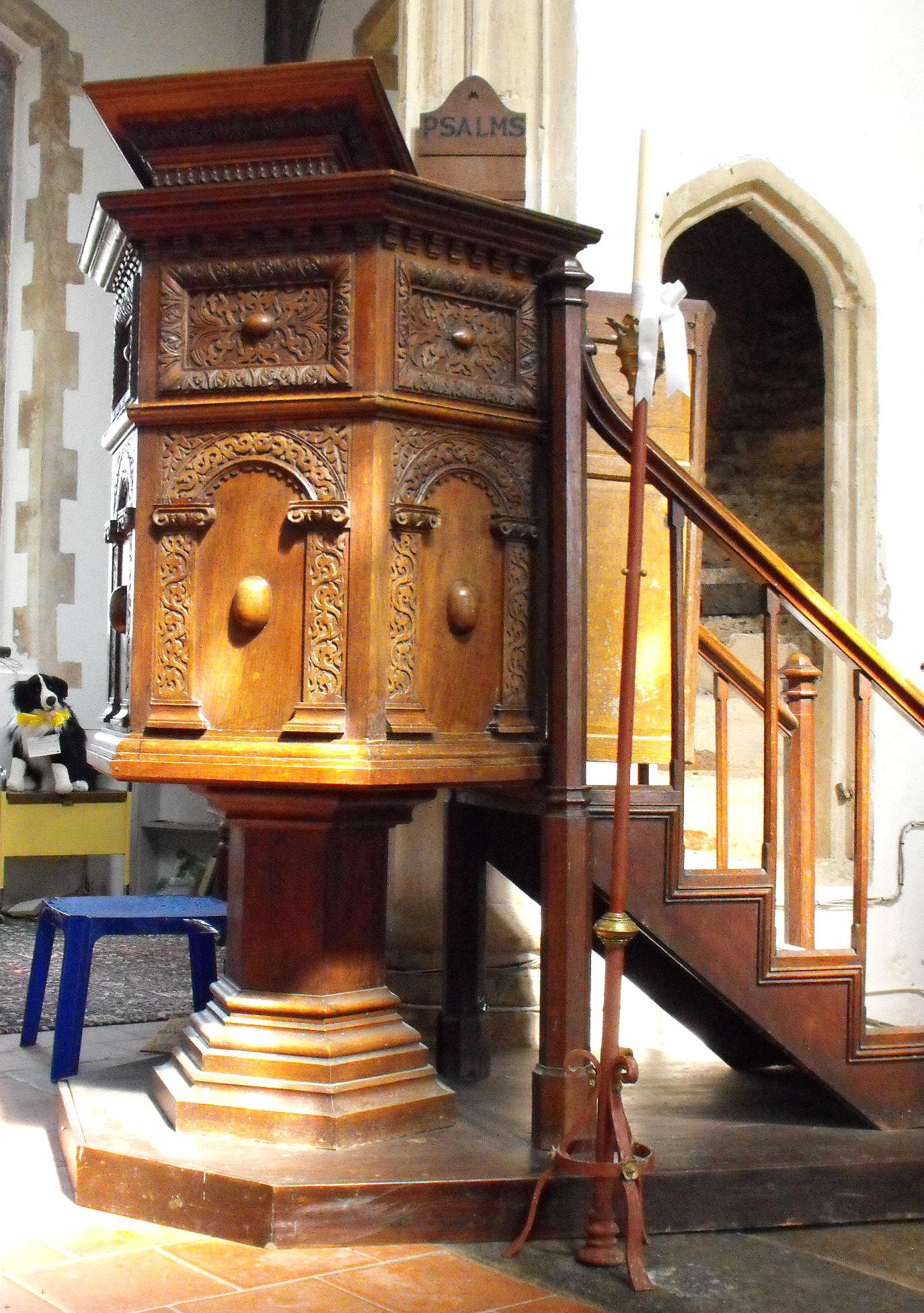 woodwork is very limited in the church but includes the Jacobean pulpit (below right),