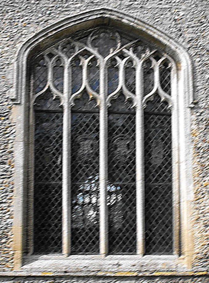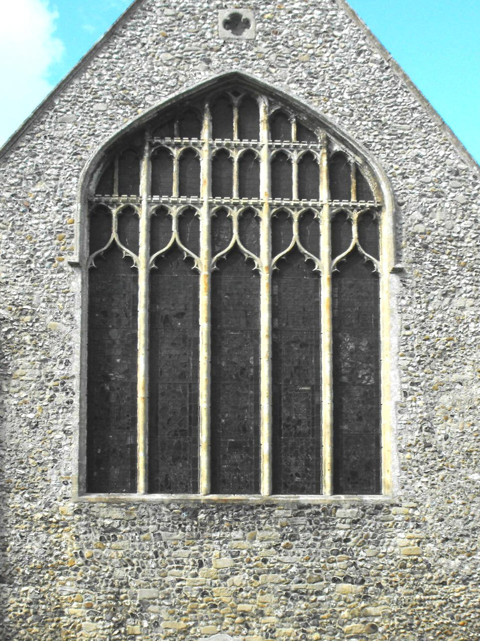 three-light W. window has cusped intersecting tracery typical of its date