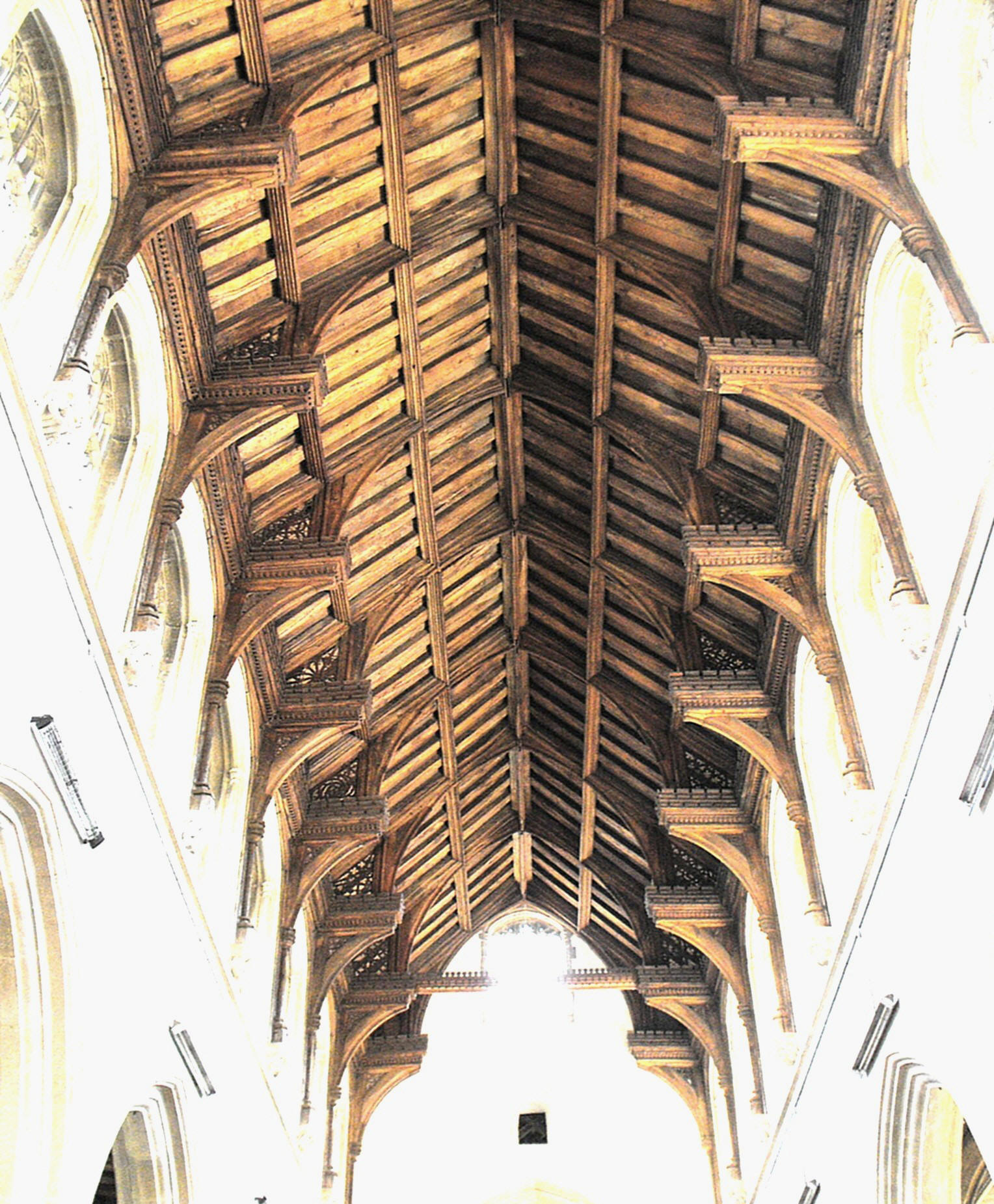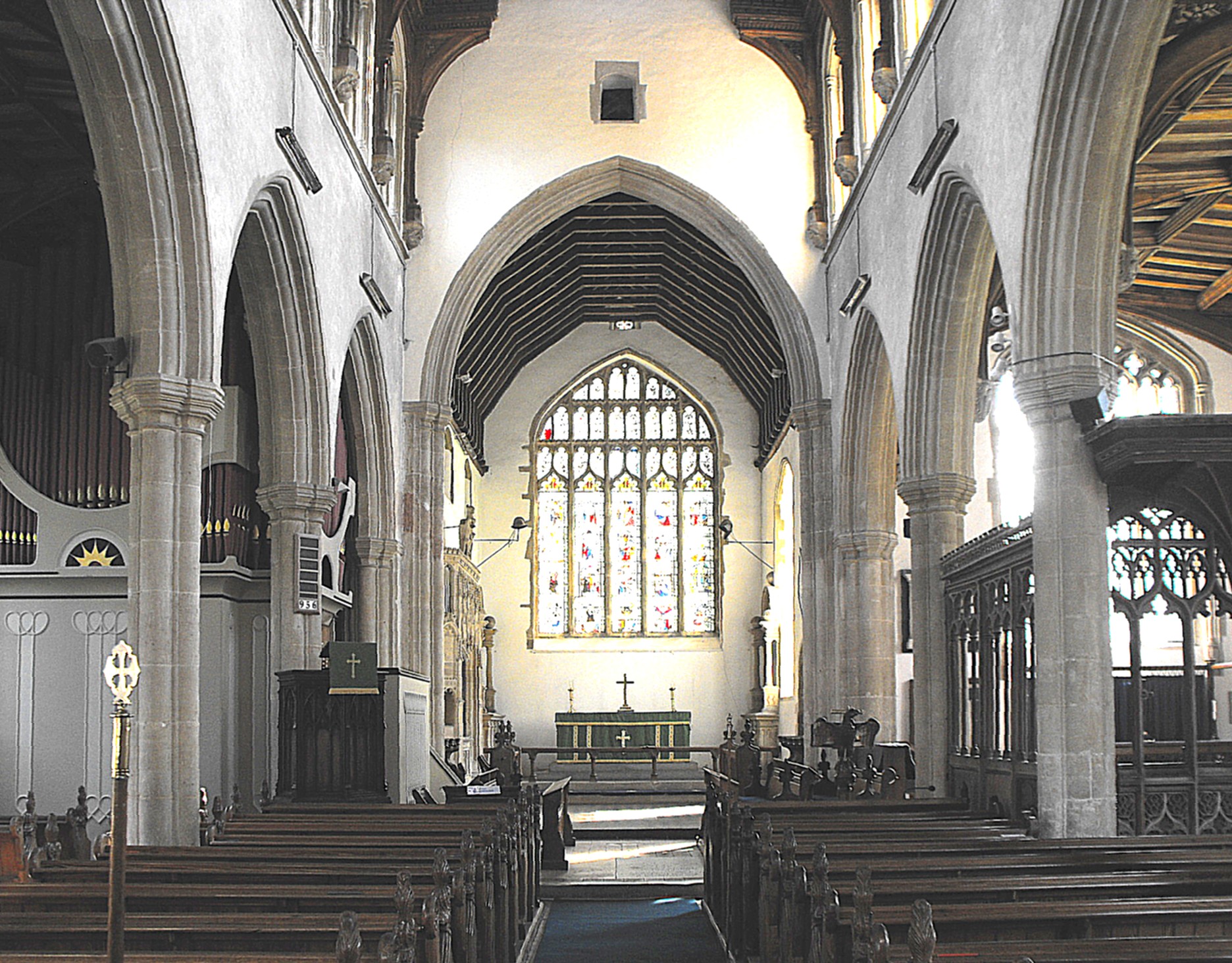 two principal windows in the chancel, the clerestory and nave roof, the S.