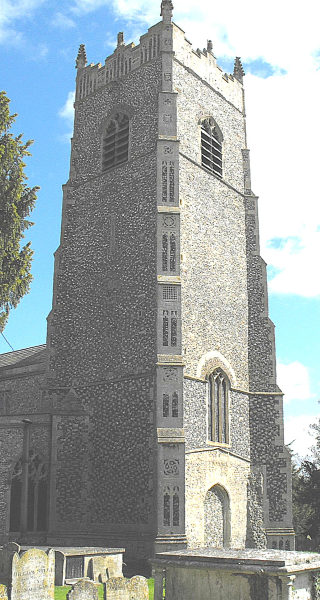 One of several churches in Mid Suffolk and South Norfolk with related towers notable for their similar decoration with flint flushwork devices.