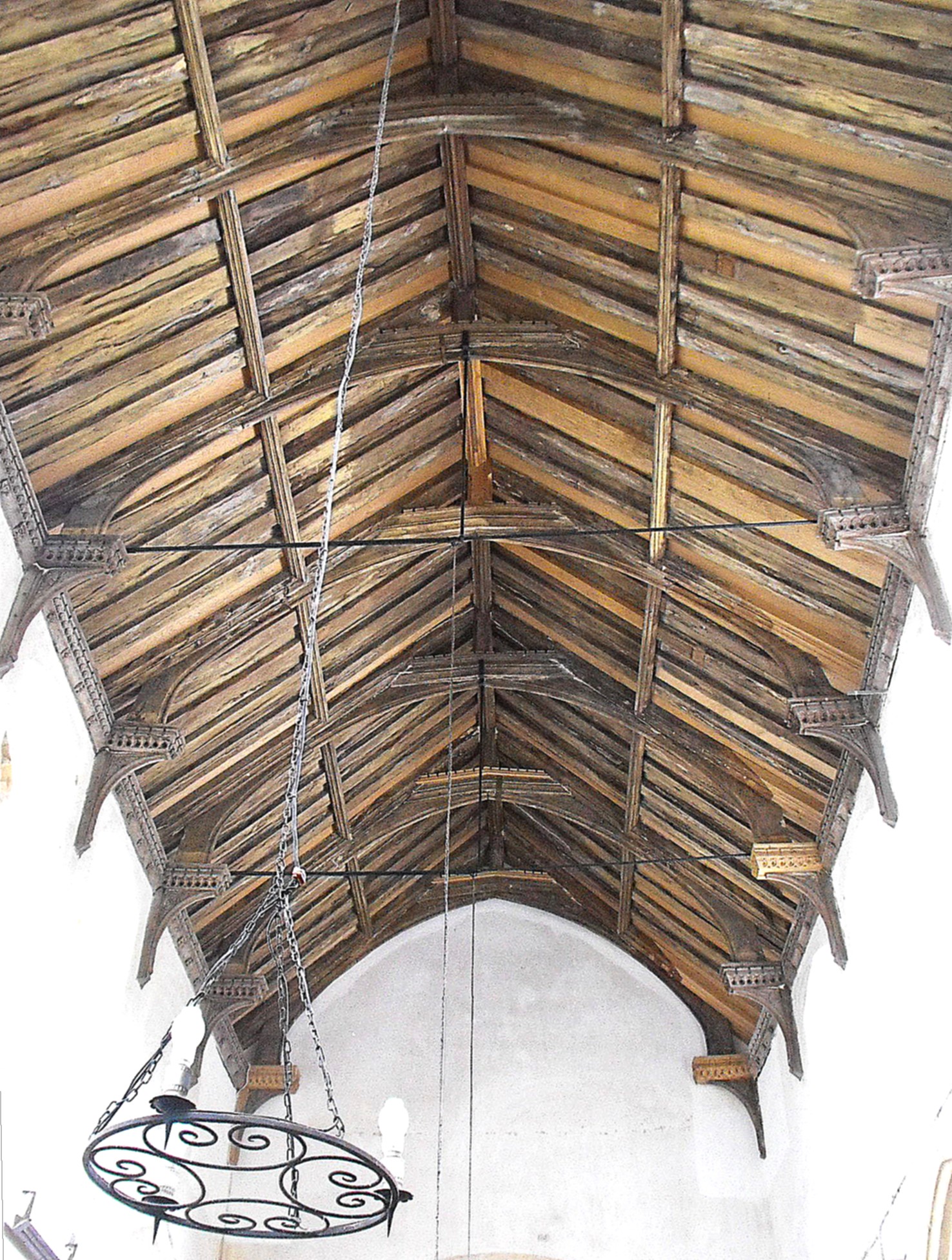 Both the hammerbeams and wall plates are decorated along their