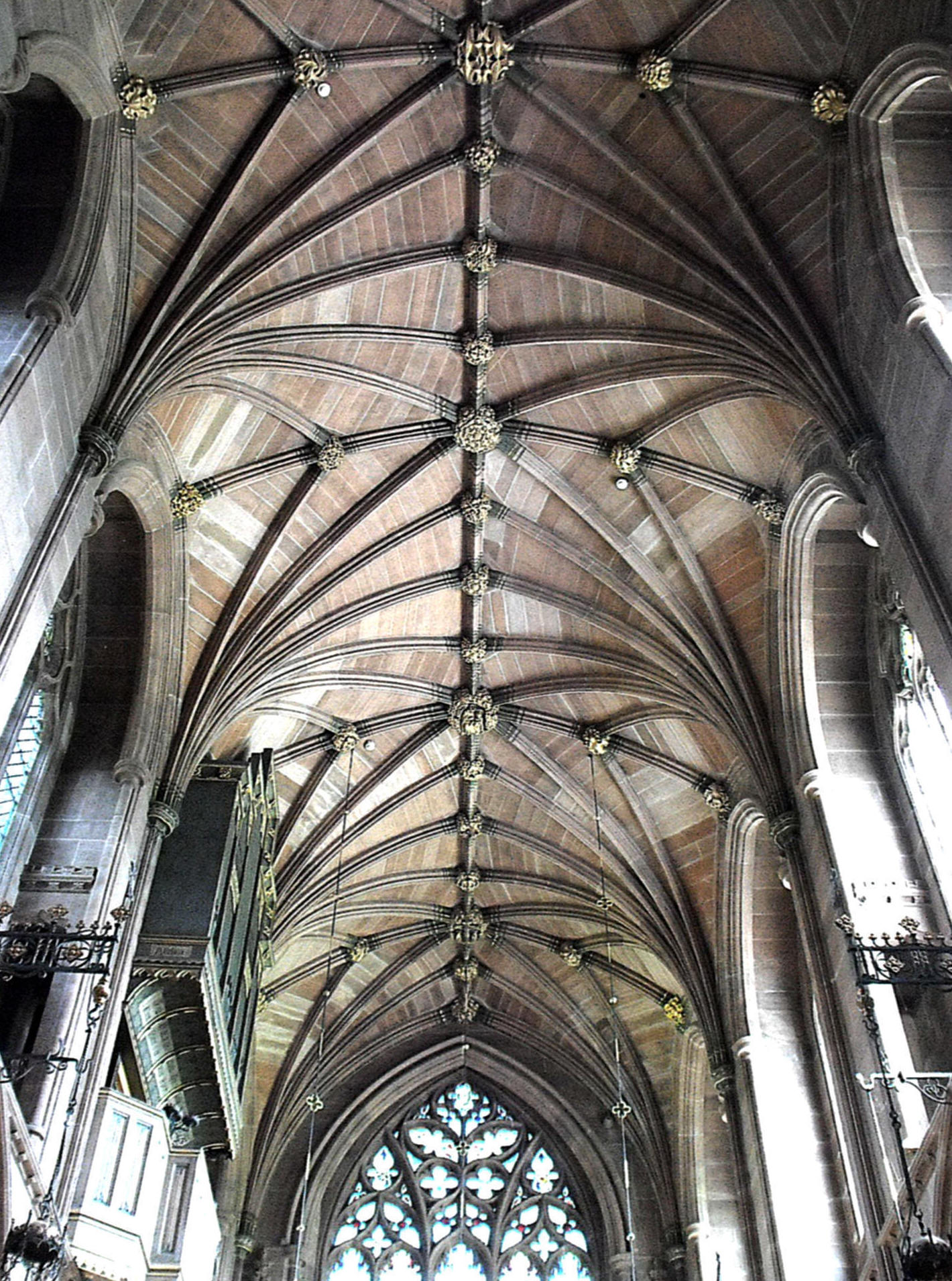 sexpartite ribbed vault, beneath the crossing with its octopartite