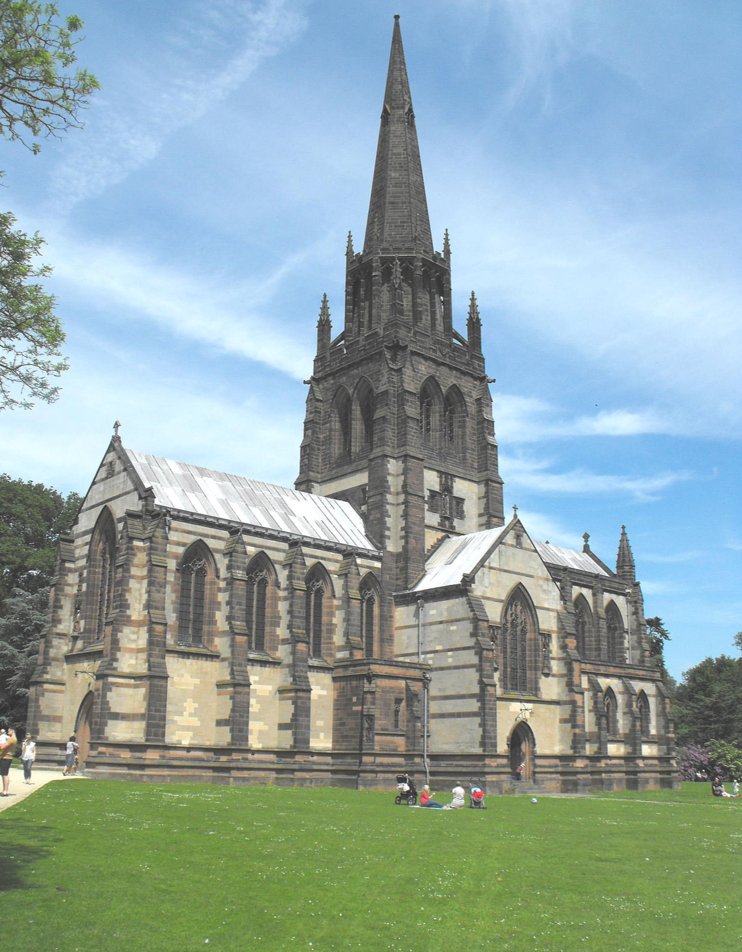 and spire already mentioned, N. and S. transepts, a four-bay nave, and