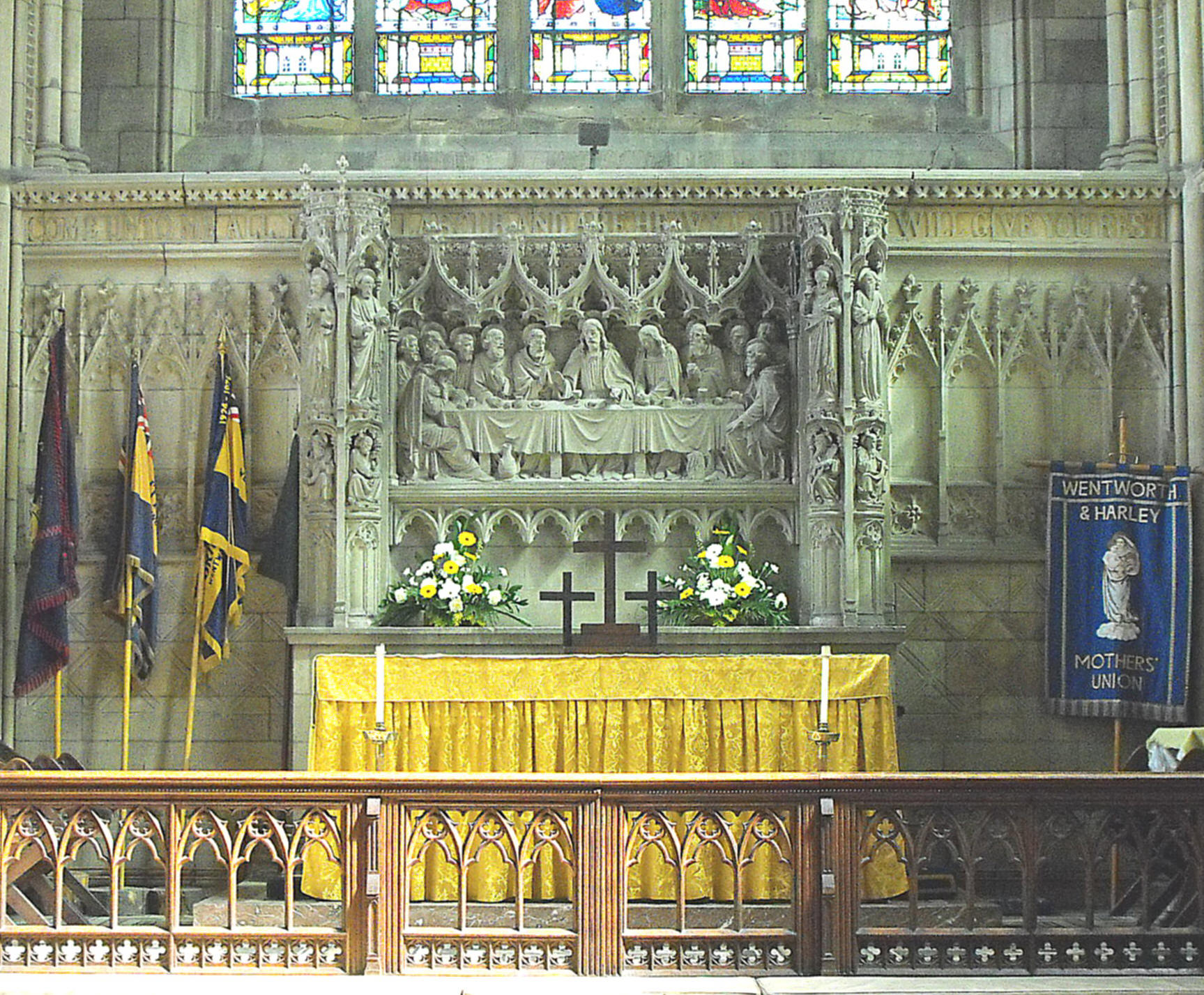 tableau depicting The Last Supper, set beneath crocketed ogee arches and