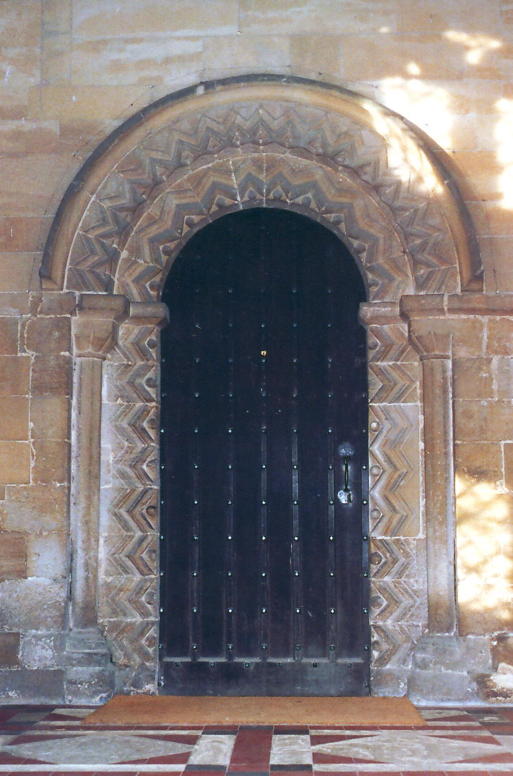St. Nicholas's church consists of a W. tower with a broach spire, an aisled nave with a two-storey S. porch, and a chancel with a lean-to N. vestry. This church, constructed of Clipsham stone from the Middle Jurassic Upper Lincolnshire Limestone, resembles neighbouring St. Mary’s, Greetham, in both plan and general appearance, and like it, is similarly reticent about its construction history. These notes will consider the various parts of the church in turn, in very approximate age order, and then seek to put the pieces together afterwards, to form a tolerably coherent narrative, and fortunately, it is at least plain that the earliest work is the re-set Norman doorway inside the S. porch. It is formed of three orders bearing two-dimensional chevron on the inner order, both above and below the abaci, and three-dimensional chevron on the next, above octagonal shafts with scalloped capitals.