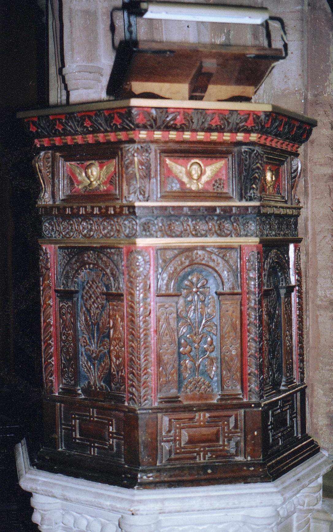 red and black paint. The pulpit (shown right) is seventeenth