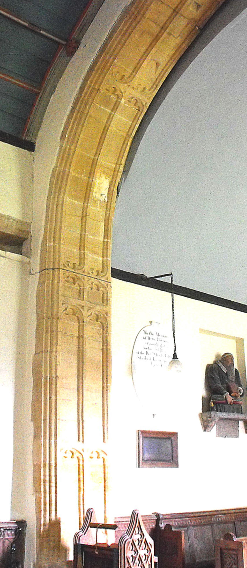 century mason. The chancel arch (the left jamb of which is illustrated, left), very tall tower arch, and very
