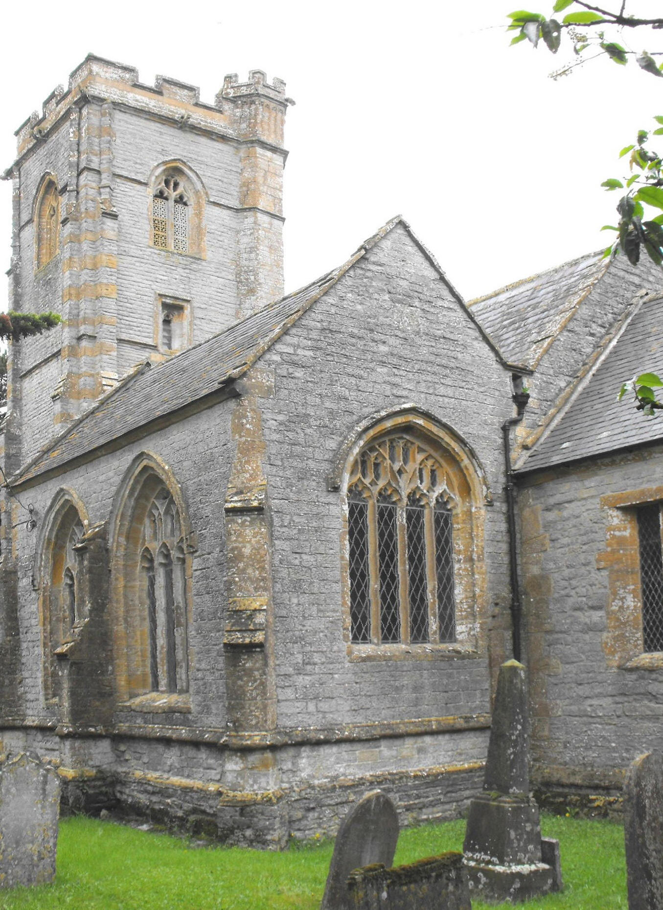 'blue' lias with golden Ham Hill dressings, and formed of a chancel,