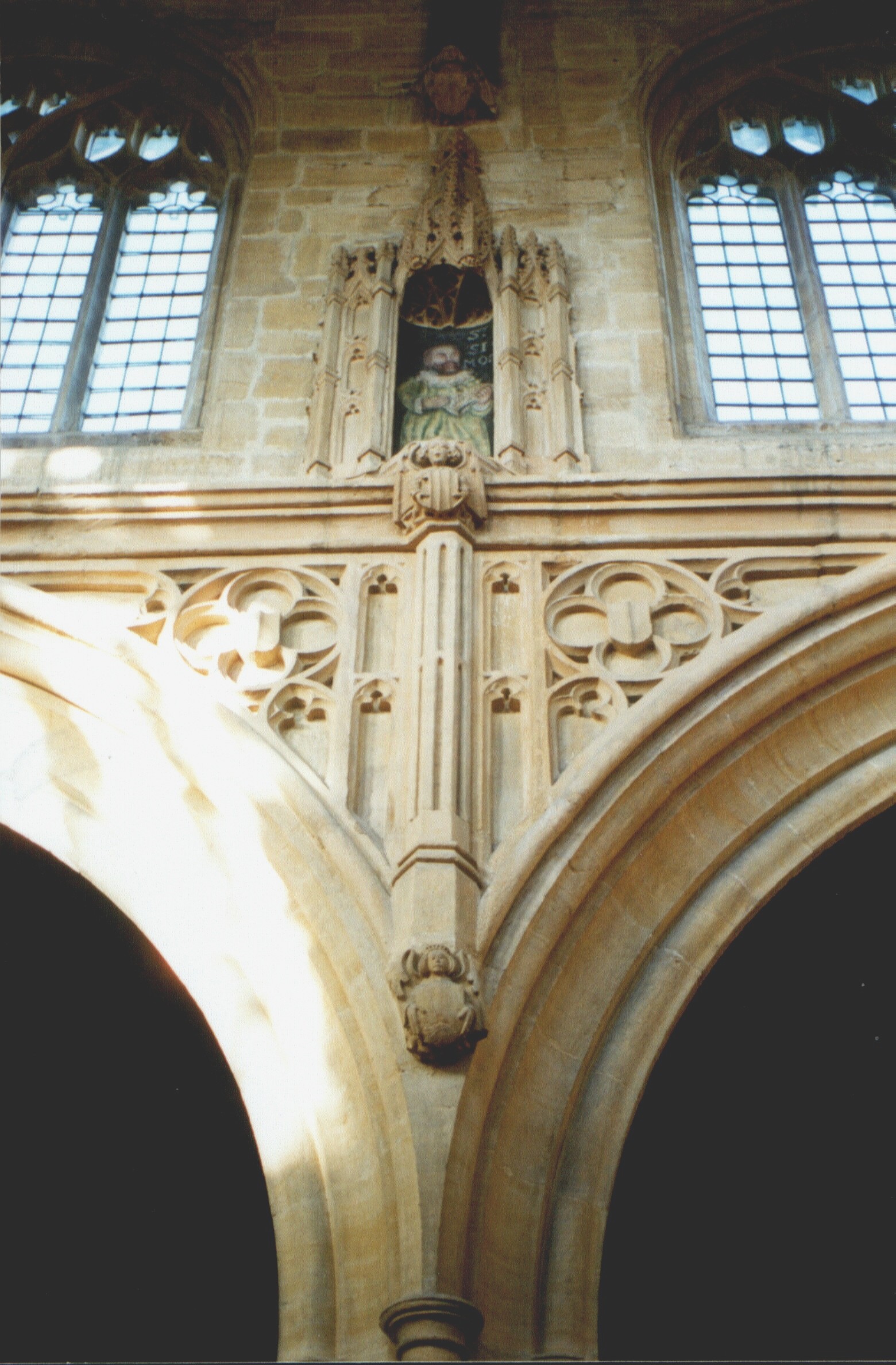 neighbour by a polygonal carved shaft. The angels bearing shields at the
