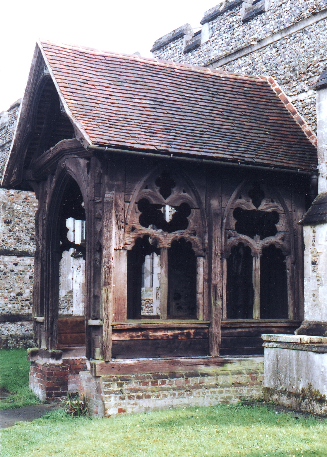 The S. porch (below right), described by Pevsner as 'exceedingly