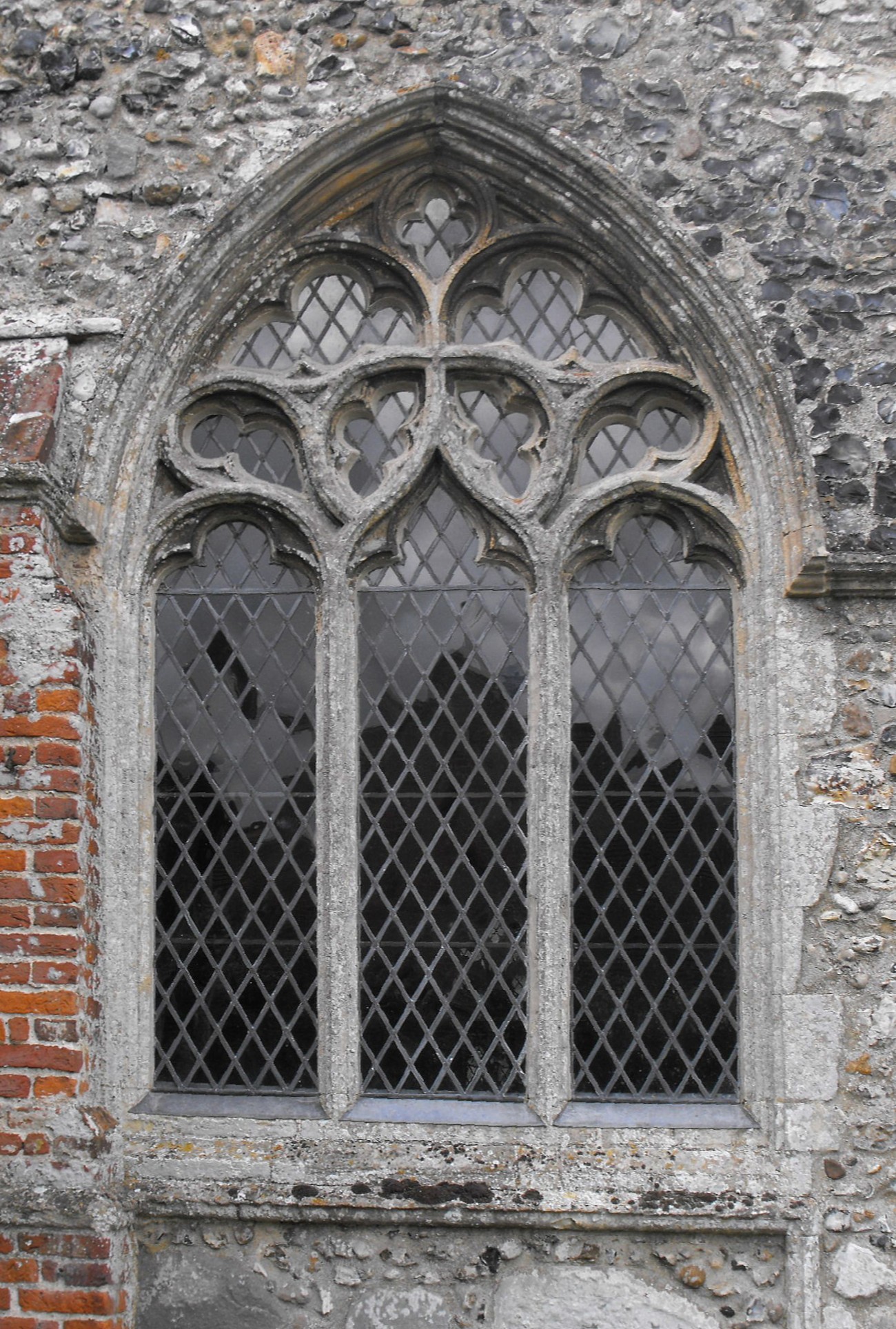 Here the rere-arches have narrow engaged side-shafts and a series of narrow mouldings around the heads comparable to those round the arcade, except in the case of the westernmost - the one copying the nave windows opposite - which has neither. The implication is surely be that this is part of an original N. aisle, contemporary with the nave, and that the arcade and two eastern bays of the aisle were reconstructed, perhaps around the time of Wingfield's chapels (c. 1430). That does not explain the misshapen windows in the new work, of course, but a scenario can easily be invented that might do so: the window traceries were designed by another hand, perhaps after the mason that built the arcade had died; these windows were brought here from somewhere else and re-set; or even that the mason who was responsible for the arcade attempted to copy older forms here with which he was not properly familiar, and made a poor job of it... Perhaps the last is the least feasible of these particular theories for was it likely that a mason who designed such a splendid arcades, would perform so badly when designing the windows? Yet even this theory is a measure of how unsatisfactory it seems to assume, along with Birkin Haward, D.P. Mortlock, and even James Bettley (The Buildings of England: Suffolk West, New Haven & London, Yale University Press, 2015, pp. 122 & 124), that the nave, aisle and arcade are contemporary, for surely it is rather more plausible that the windows should attempt to copy earlier forms than that the arcades, without any local precedents, should so dramatically anticipate a later one. Perhaps the reader will devise a better theory...