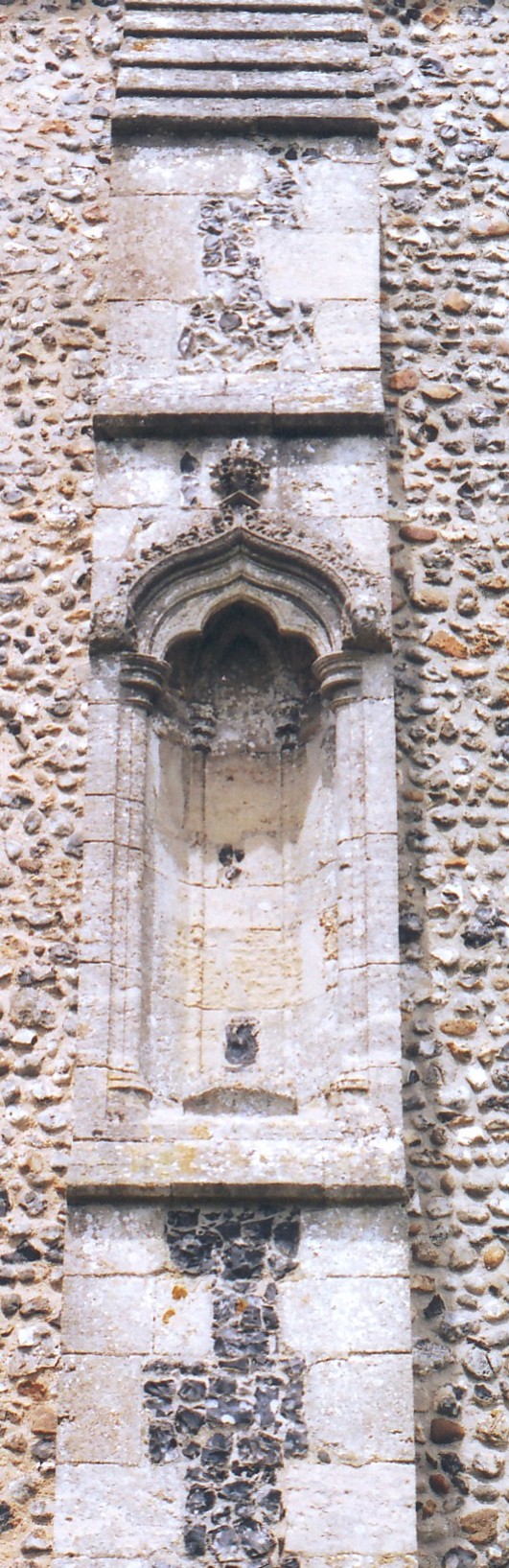 the lower and upper stages, three canopied niches (the one above the doorway