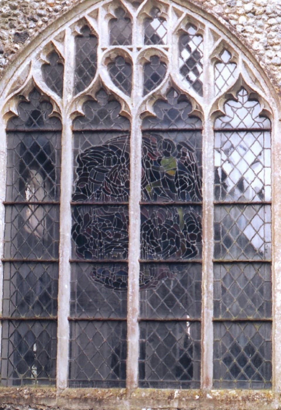 south and west, with cinquefoil-cusped intersecting tracery and transoms.
