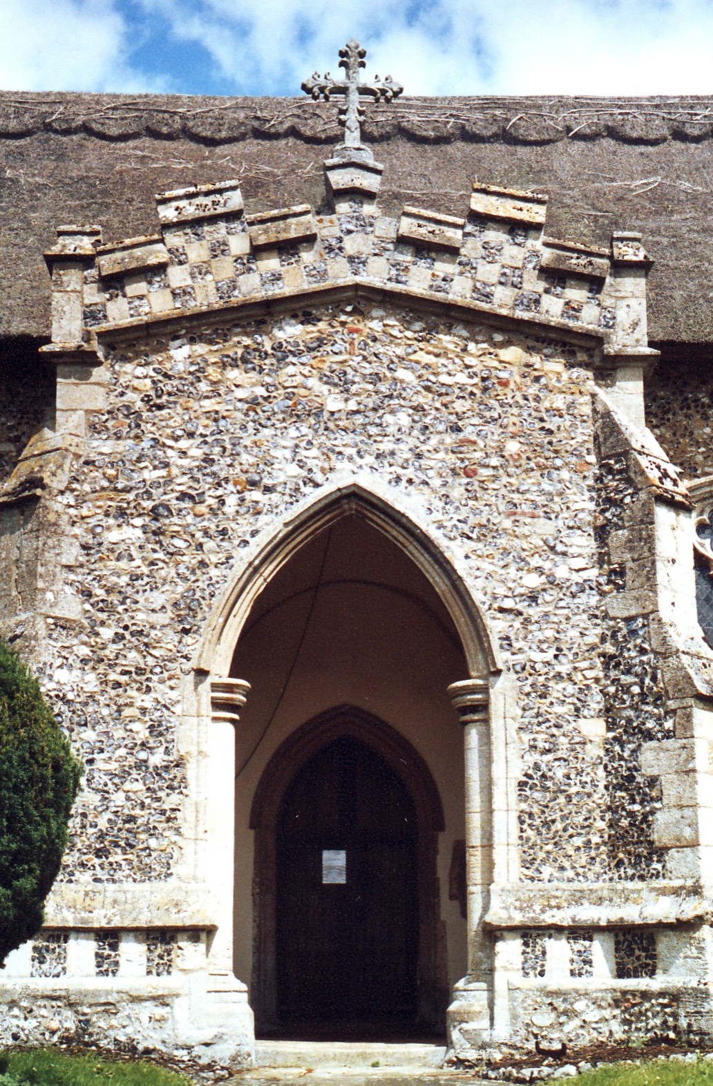 would also the nave S. windows and the two shorter, similar windows to the porch. The porch has a very low-pitched roof
