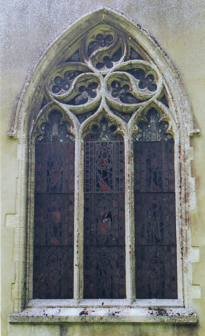 two-centred and three-light, with standard supermullioned tracery and transoms,