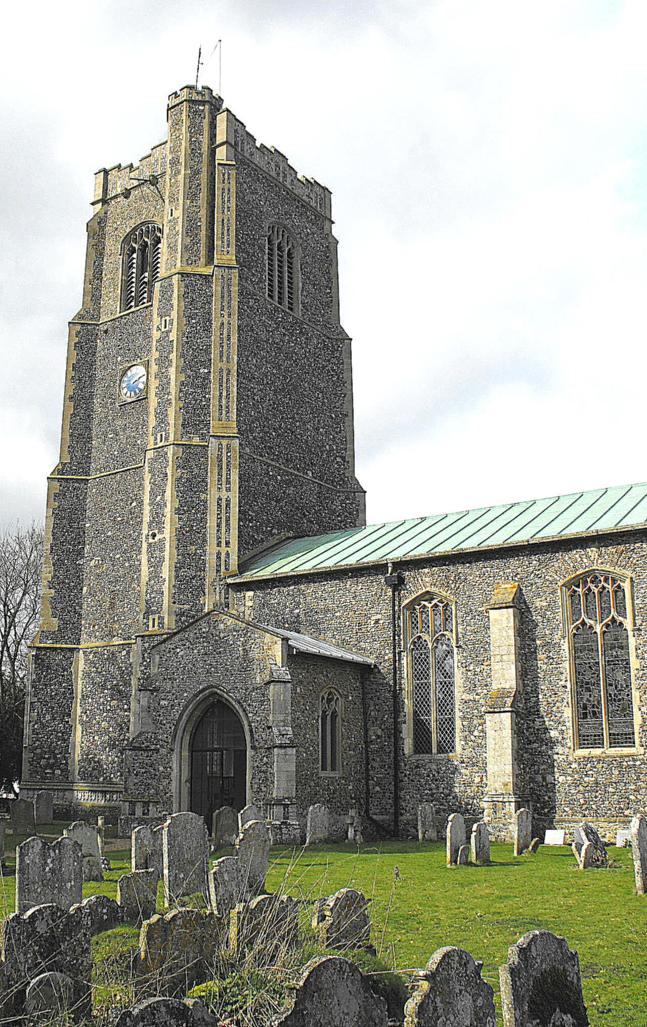 This is one of the larger churches in this part of Suffolk, with a dignified W. tower and a long nave and chancel with adjoining N. aisle and chapel. The church interior is rather bland but contains a few specific features of interest and the low six-bay N. aisle arcade that survives from Decorated times is certainly striking.