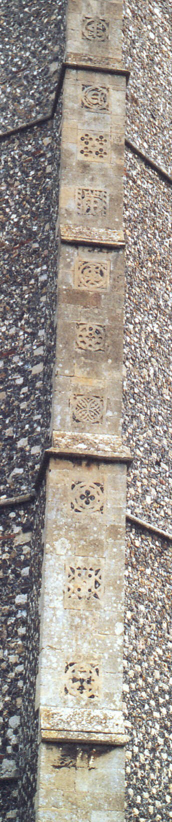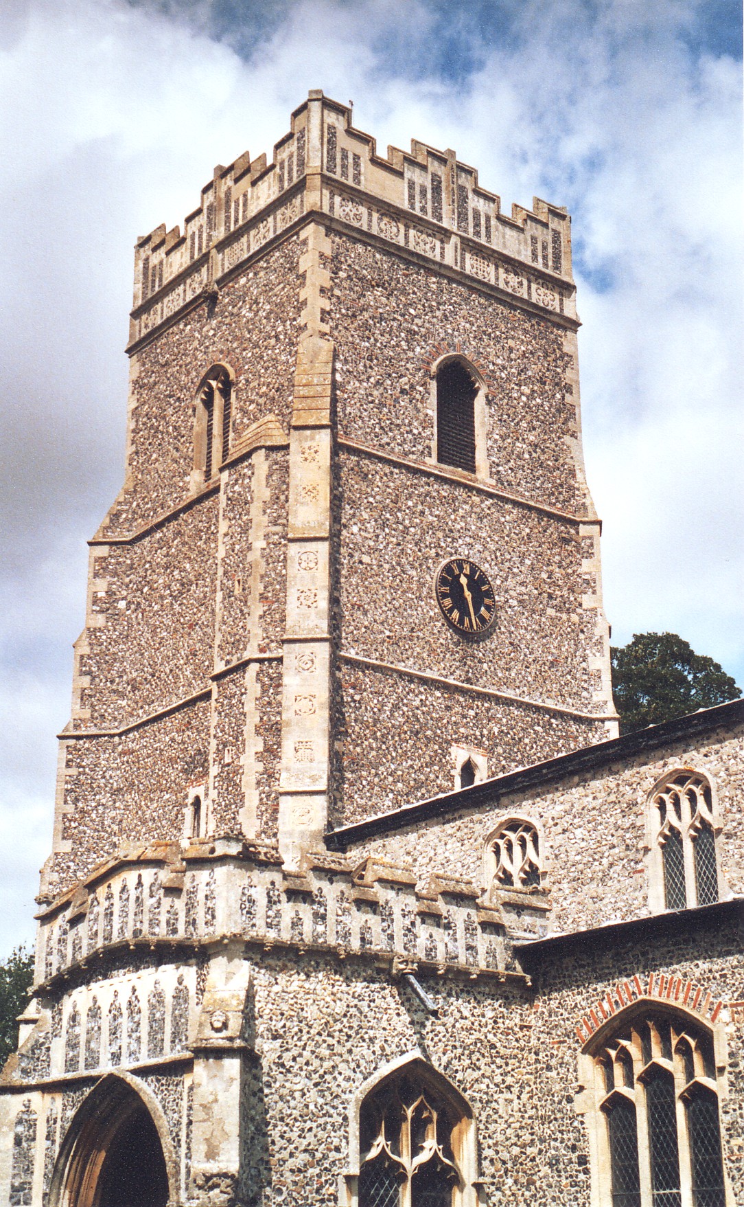 One of several churches in Mid Suffolk and South Norfolk with related towers notable for their similar decoration with flint flushwork devices.