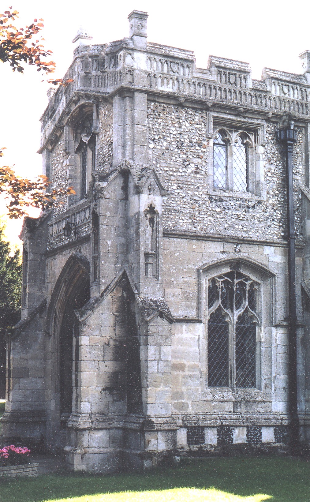 This is an all-embattled church, built on a grand scale, with an especially impressive W. tower (shown, left, from the southeast) that dominates the town above the roof tops. It seems to derive largely from two periods: (i) an extended period, covering, perhaps, the last quarter of the thirteenth century in the case of the chancel and transversely-gabled N. vestry; and (ii), a shorter period corresponding to the reign of Henry V (1413 - 22), provided this is not to place too great a reliance on the evidence of the swan and antelope emblems carved on the S. aisle roof.