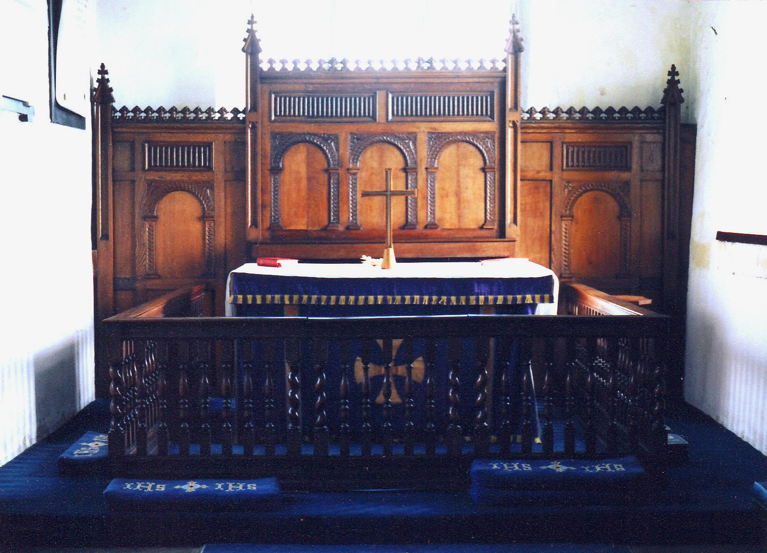 Finally, the church contains one notable piece of woodwork, which is the communion rail with twisted balusters (illustrated below) that surrounds the communion table on three sides. Pevsner considered this to be eighteenth century work but Laurence Harley, writing in the original edition of the church guide in 1951, before Pevsner's visit, said seventeenth. Perhaps late Stuart is a reasonable compromise.