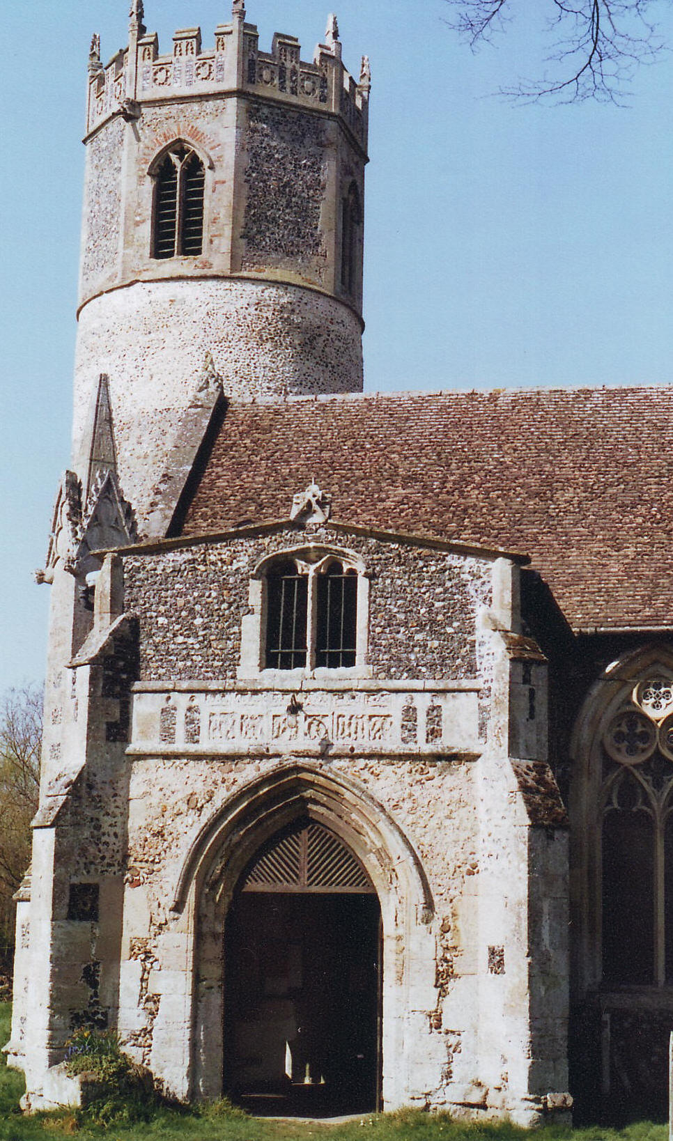 One of 181 churches in England with round towers, of which all but five are in Cambridgeshire (with 2), Essex (with 6), Norfolk (with 126) or Suffolk (with 42).
