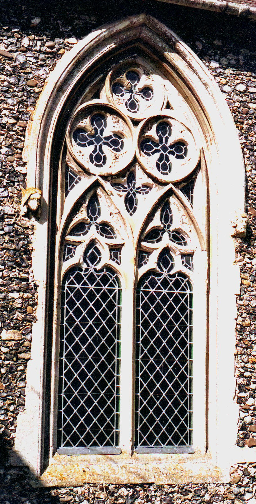 trilobes (pointed trefoils) in the heads of the lights. The S. aisle W. window has