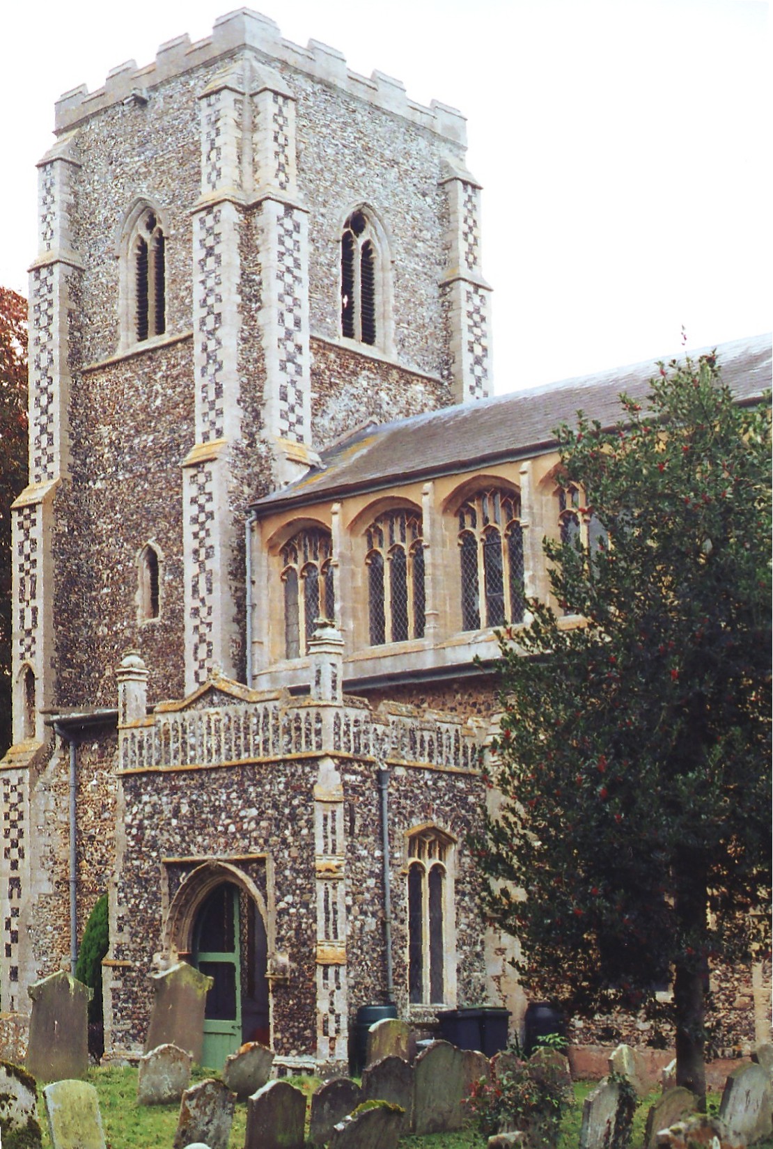 This church looks very much like one of East Anglia’s 'Perpendicular glasshouses' on approach, due to the magnificent nave clerestory formed of eight pairs of large three-light windows with supermullioned tracery beneath segmental arches. It is, however, the product of several building phases, some older than at first appears, and on this occasion it will help to begin the examination of the church inside. The building consists of a W. tower, an aisled nave with a S. porch, and a heavily restored chancel with a N. vestry.