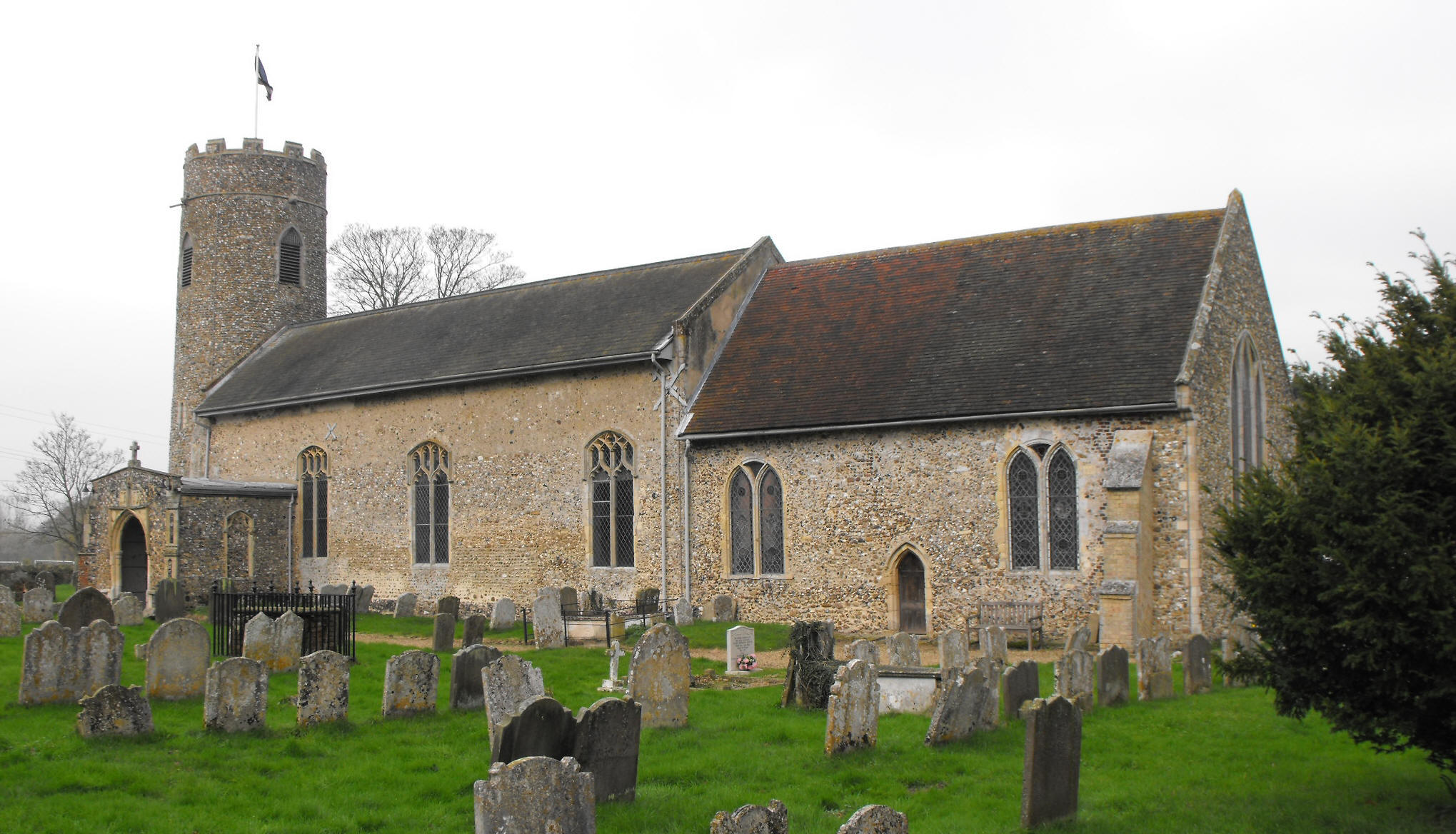 One of 181 churches in England with round towers, of which all but five are in Cambridgeshire (with 2), Essex (with 6), Norfolk (with 126) or Suffolk (with 42).