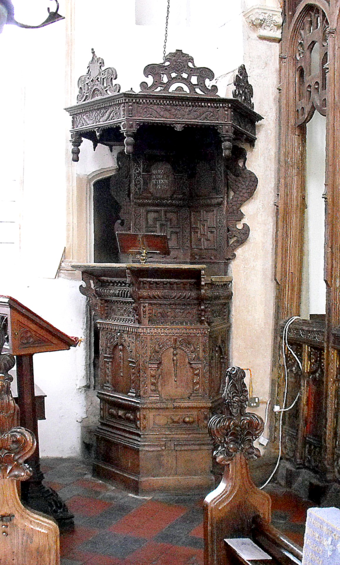 A village church with several interesting, disparate features, including a fine Perpendicular N. porch and an excellent Carolean pulpit dated 1635.