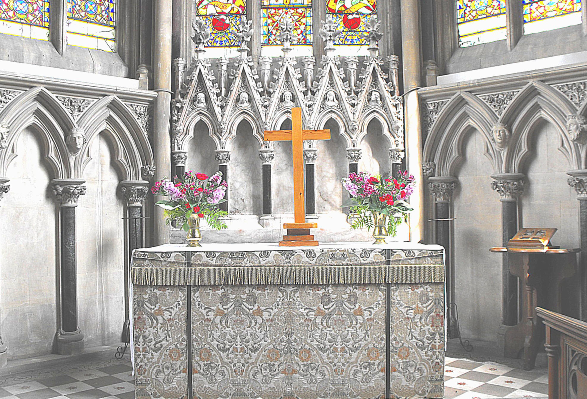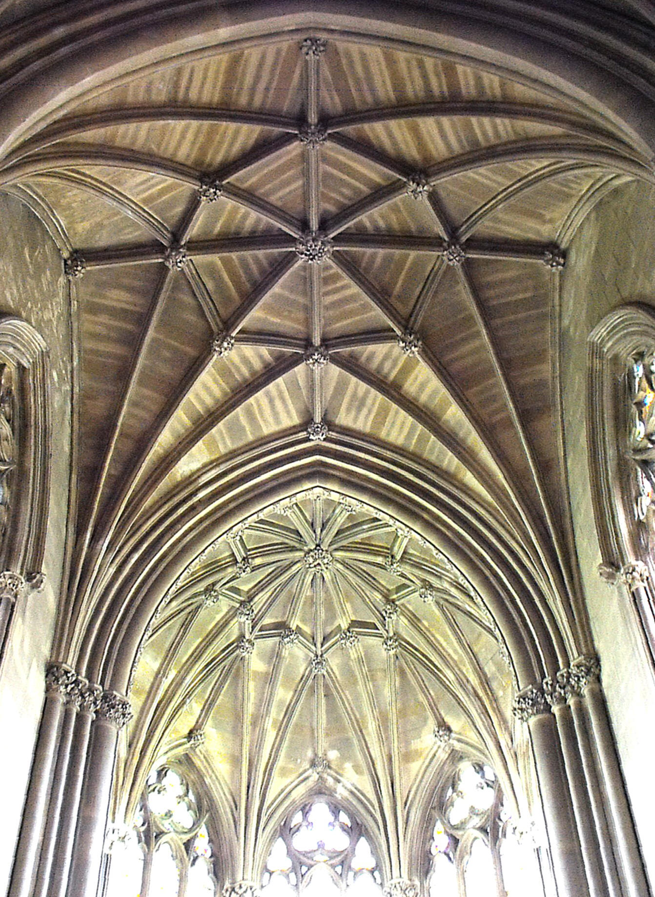 design of trilobes, alternately the right and wrong way up, and above and behind these, the openwork nave battlements,