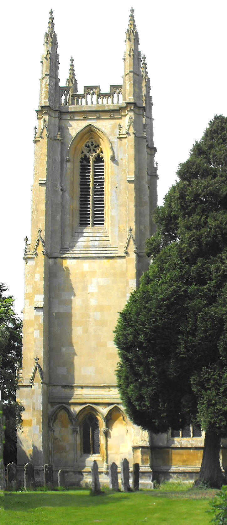 the nave, by buttresses terminating in gablets on the cardinal sides, and in the case of